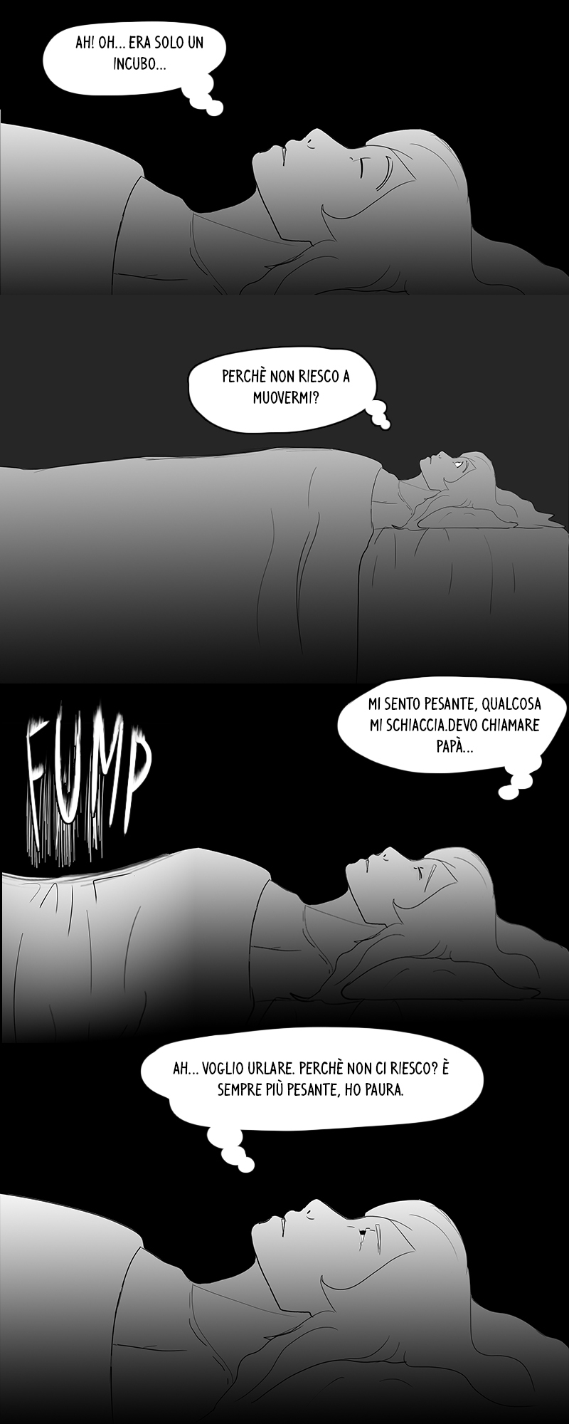 Luna si sente braccata dalla morte e rifiuta il cambiamento. Fugge con il suo monopattino della vita reale, in un delirio dato dalla paralisi del sonno. Si sente sola ed abbandonata, ma qualcuno non ha mai lasciato il suo fianco...
