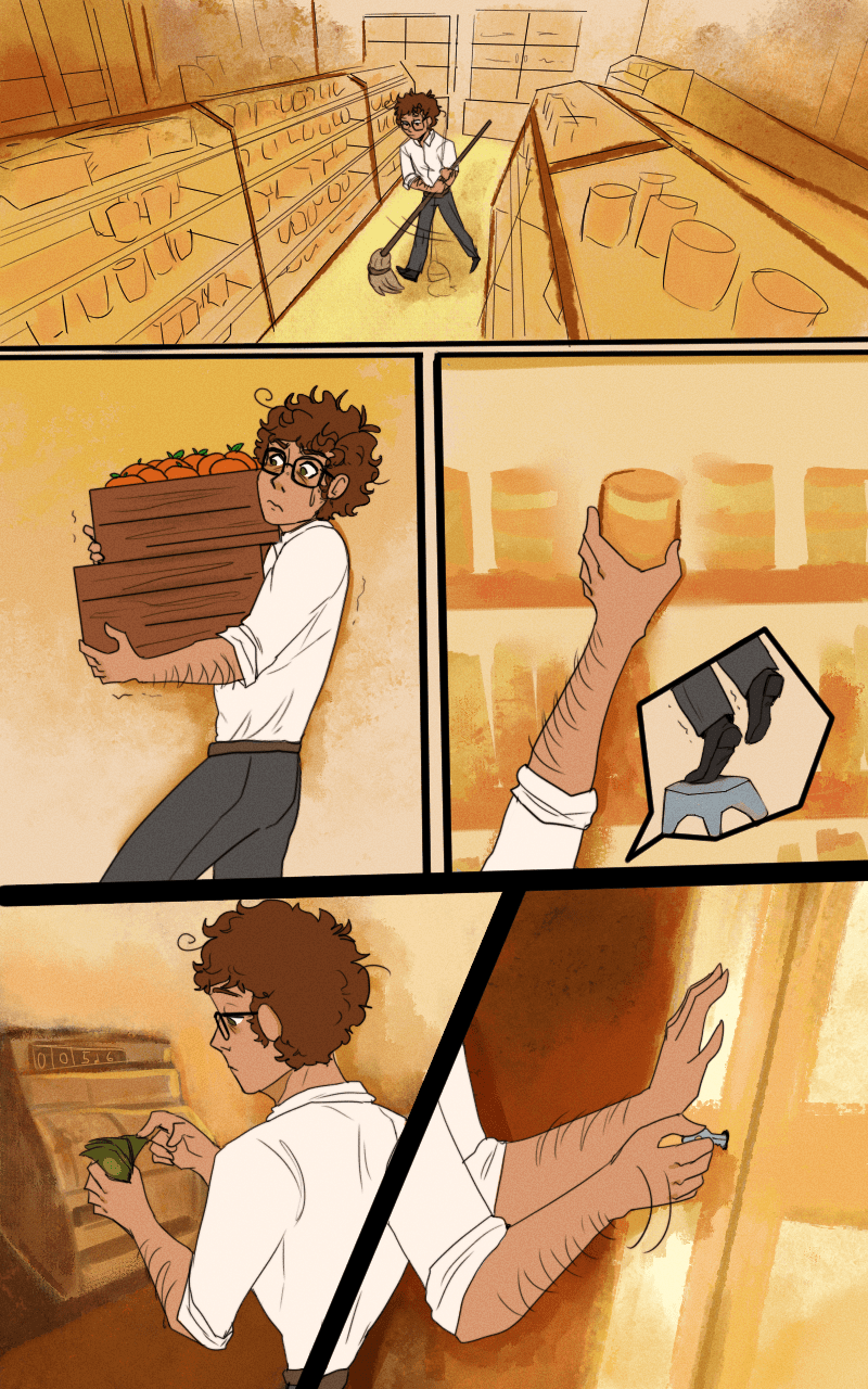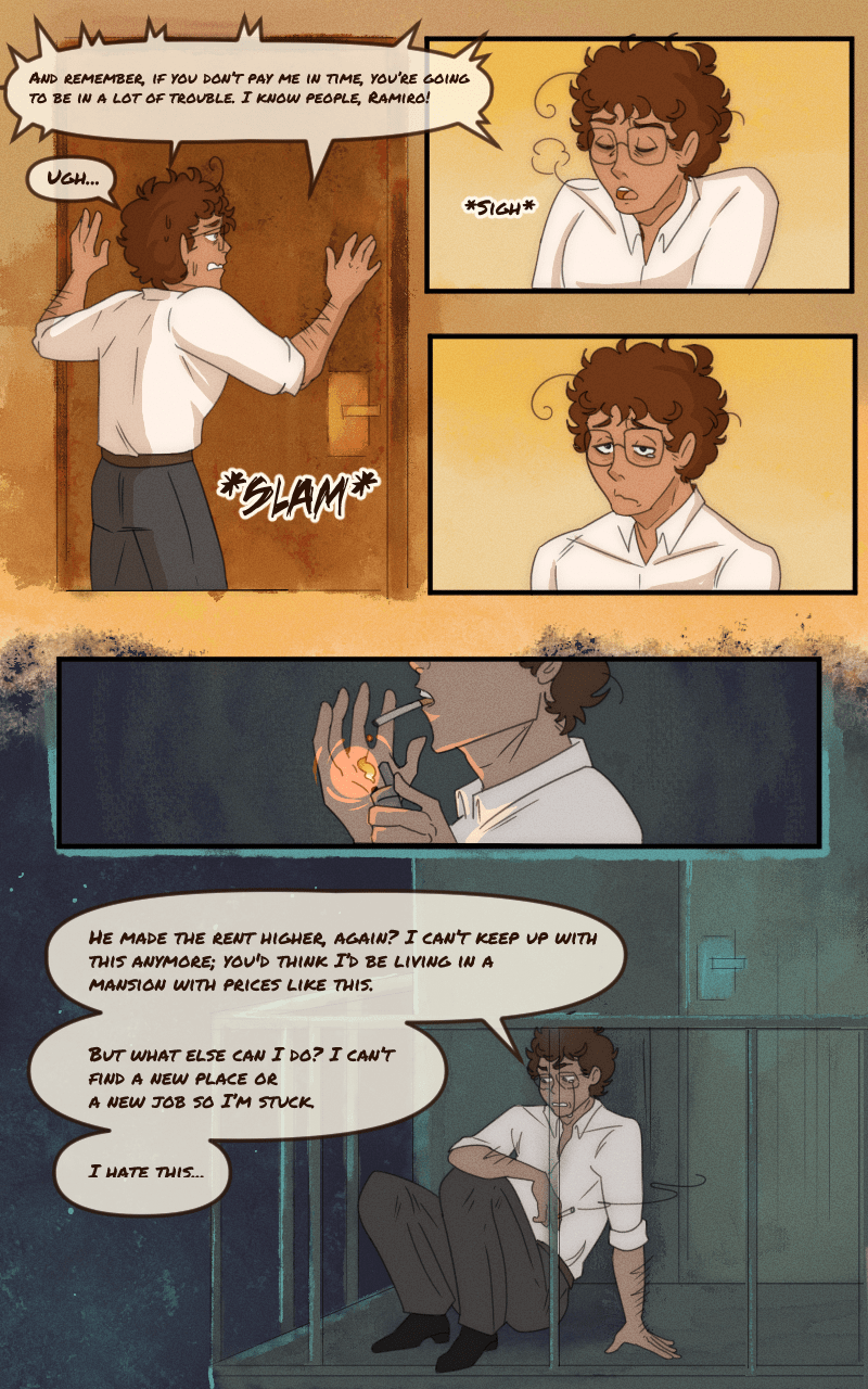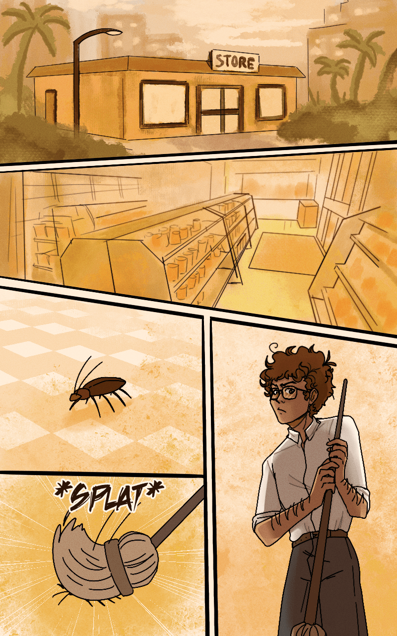 Thank you so much to my friend Harrison who redrew the character lineart and coloured them in because I'm stupid and I merged all the older pages together.