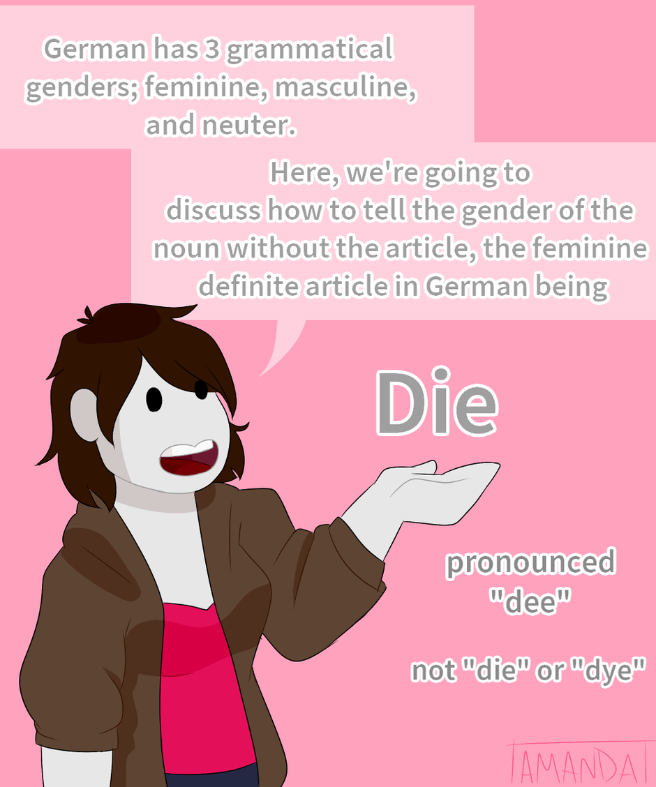 A comic where I teach you German! German is one of my favorite languages that I've studied and I would love to help you learn it. I'll be posting whenever I can to teach you about different things in German, whether it's grammar, sentence structure, grammatical gender, pronunciation, etc!