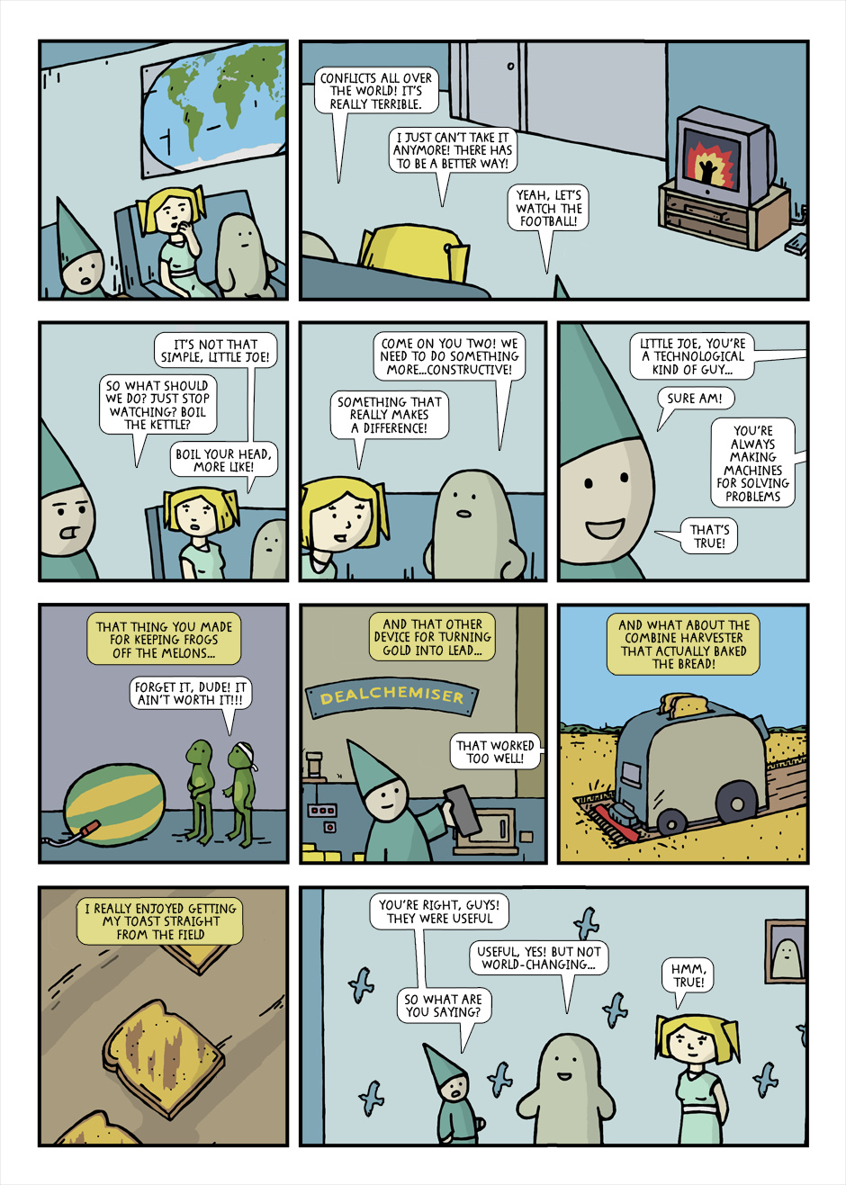 When Lard can't take all the tragic events that keep coming through the TV every night, he decides to take action. Surely Little Joe can build a machine to create world peace!? But when Alice becomes the first human to try the machine, things get seriously out of hand. This thrilling story sees Lard confronting the very sources of power, before risking everything to create world peace. But will he succeed or will everything go horribly, weirdly, comically wrong...?