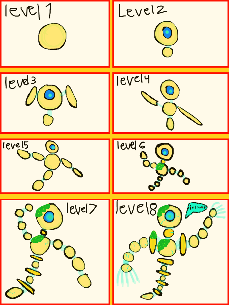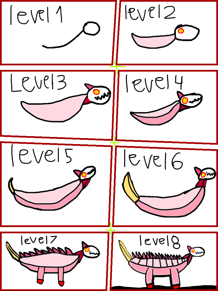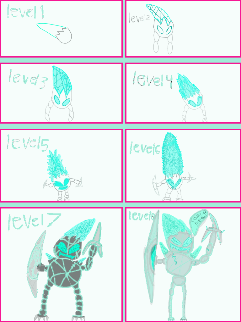 Page 1 cat warrior page 2 dinosaur? Page 3 golem page 4 crystal warrior