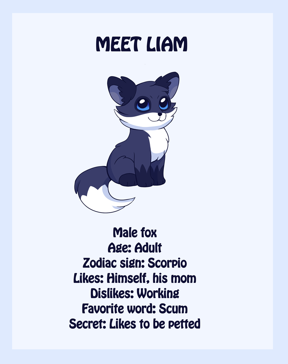 Liam is a cute little fox, at least he seems like that, but in reality he is not that nice and has devious plans. Luckily, there are others to keep him company and remind him life is not that gloomy all the time. Follow him and his friends as they make you laugh.