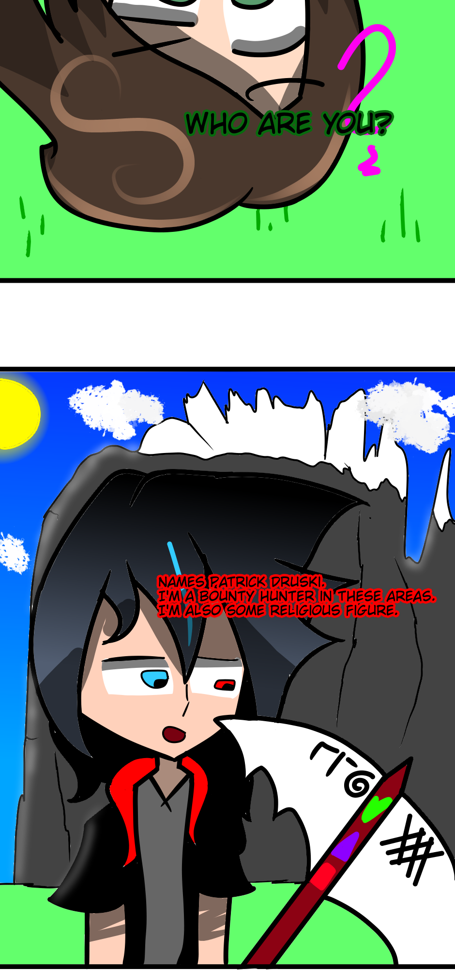 Everything wasn't going so well for Sian Punzo. Still struggling on Earth, a portal opens and snatches him into another world. After some tassle, he comes across his first two otherworldly figures. Patrick Druski, and Flame Tsumako.