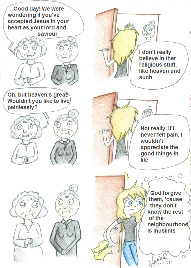This is some of my first comics, I've translated them to english and therefore replaced my shitty writing with some awesome paint-text.