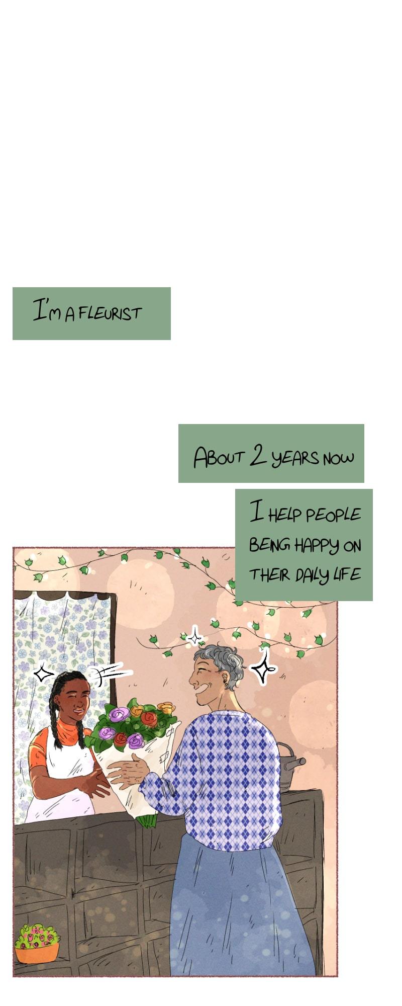 Opale is a florist and loves making her customers happy with her flowers.