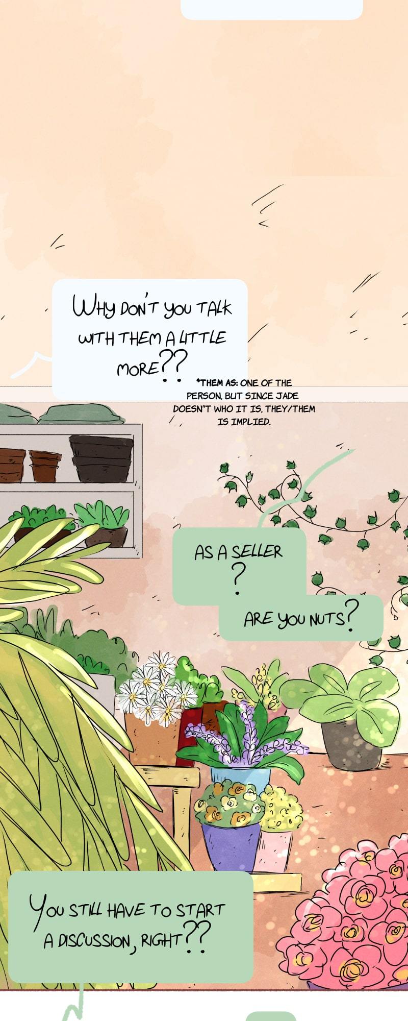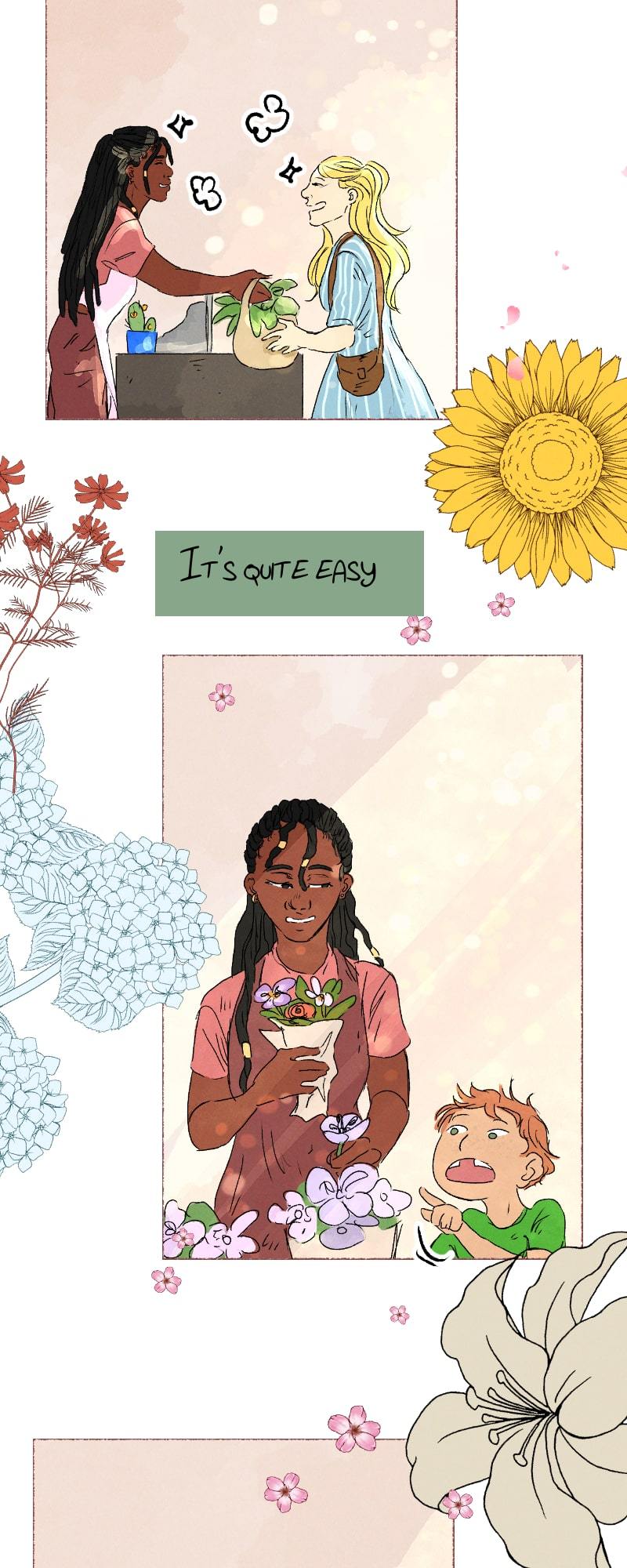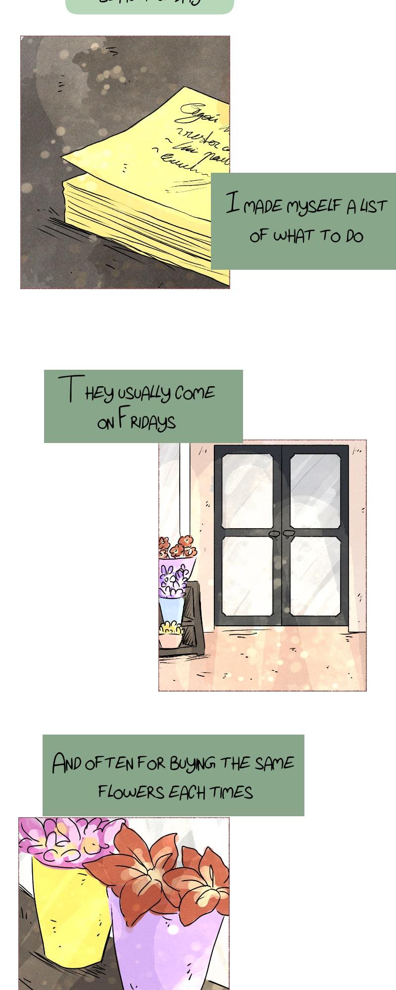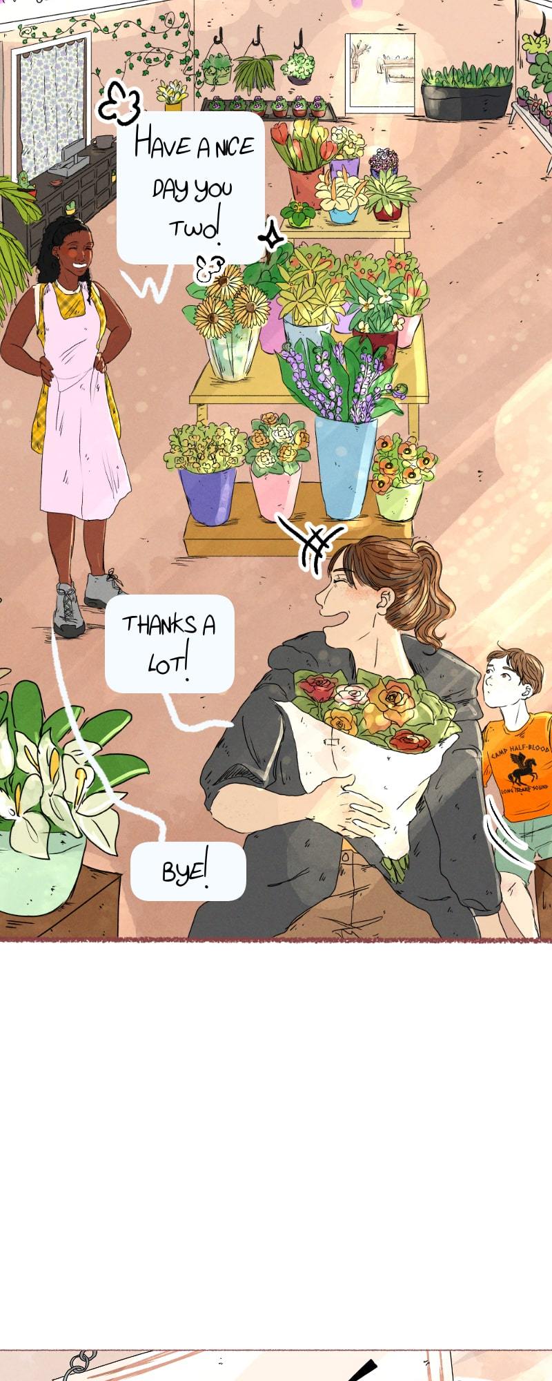 One day, Charlie, one of her regular customers, walks into the store without her boyfriend, and asks for help with a bouquet of apologies flowers.