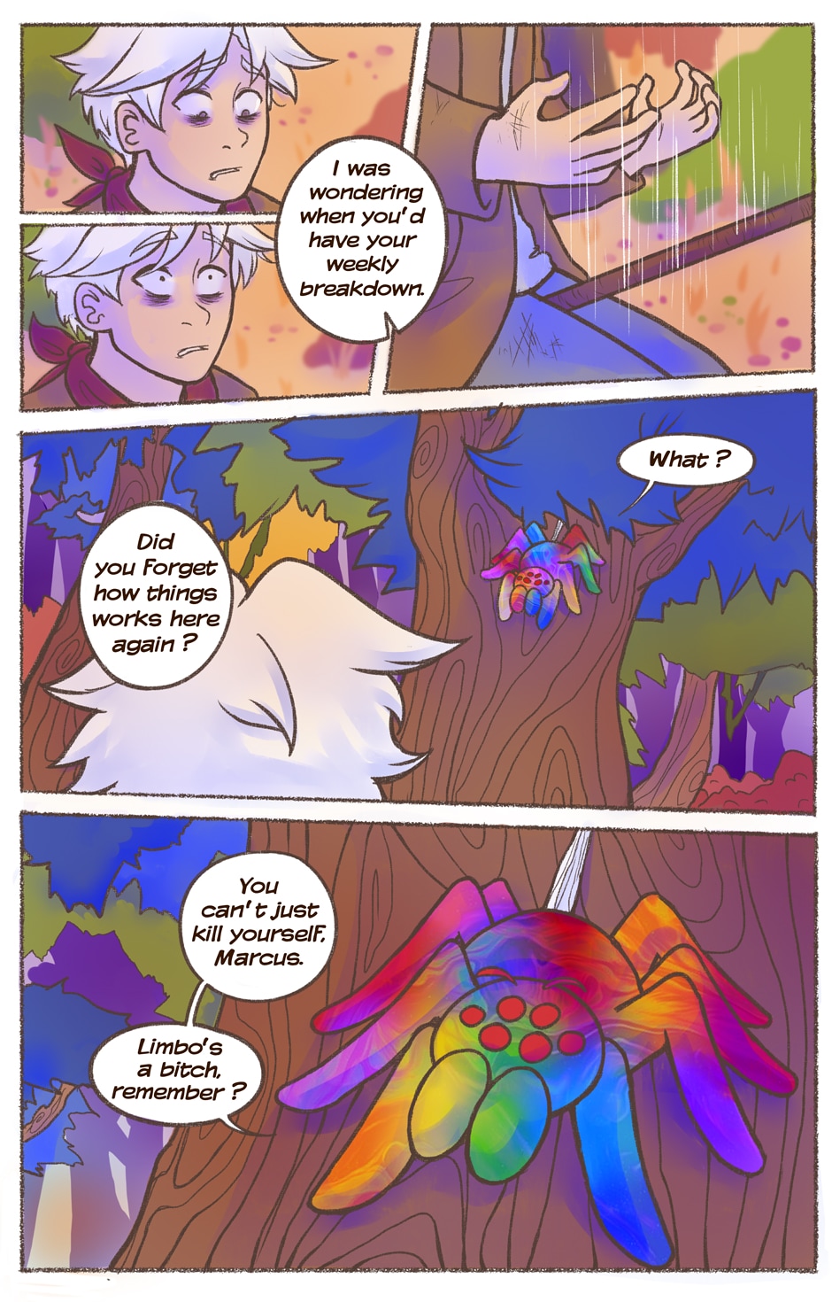 It was just another rob job for Marcus Magnus, stealing a priceless rock from the museum. However, the moment he touched it, the young man found himself trapped in the realm of Limbo. Neither heaven nor hell, not alive or dead. There he remained for over two centuries, slowly descending into madness. His only companion a talking multicolored spider named Doctor Twist, who may or may not even exist. When an opportunity to escape finally appears, Marcus will set out on a somewhat bizarre adventure as he desperately tries to return home!