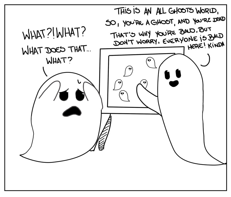 There is a hidden world inhabited by ghosts called Limbo, and like in our world, they do all kinds of stuff, like making friends, going through hard stuff, falling in love, or simply having fun with their friends remebering the old days while they were still alive!