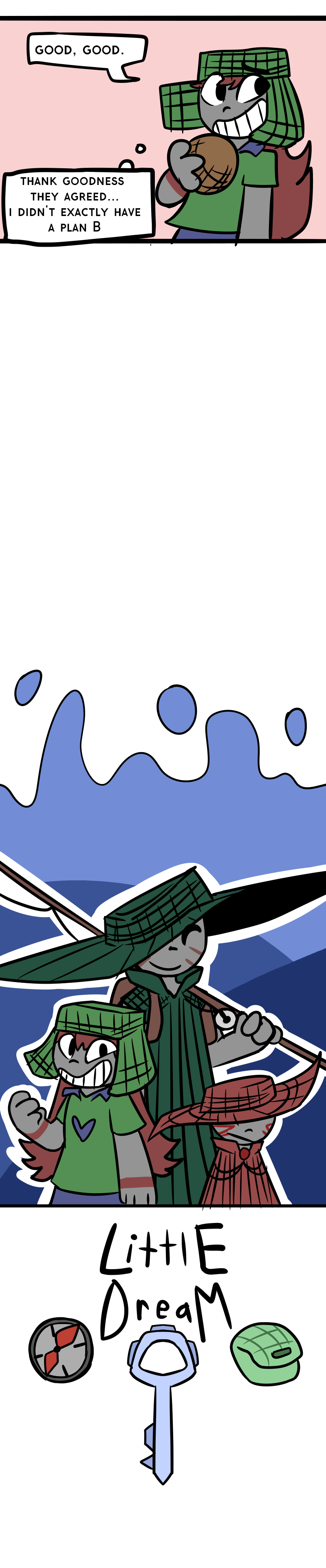 After getting stuck in an endless room, Tiny, Tally, and Mani try to find their way out. Little do they know that dangers lurk in unexpected places. This story follows themes of growth, self-acceptance, and judgement. Join these three charming characters on their surreal journey through the unknown!