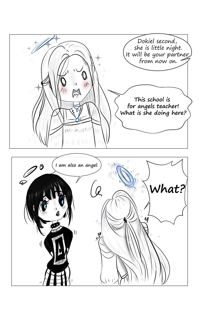 LITTLE NIGHT -Death in training. Little night, he is an angel of death in training just entering a school of angels and creatures about natural. Part of the work of the angels is to have a co-worker for all eternity and they are assigned to Dokiel second, son of the angel Dokiel who, like his father, is the angel who examines the souls of every human being who came to heaven after the death. What makes it the perfect companion for the angel of death. Doki (nickname of love) is afraid at first.