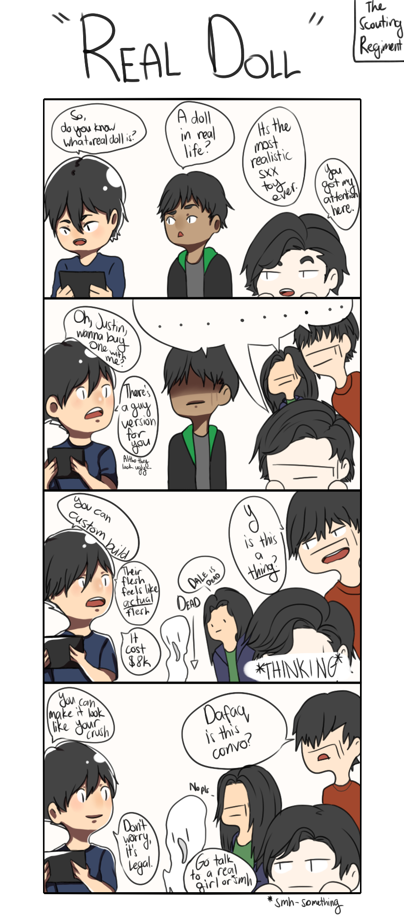 In the Scouting Regiment or "スカウト連隊" Group Chat in Facebook, Diego decided to bring up the topic "Real Doll" and the details about it. Fixing the texts tomorrow!