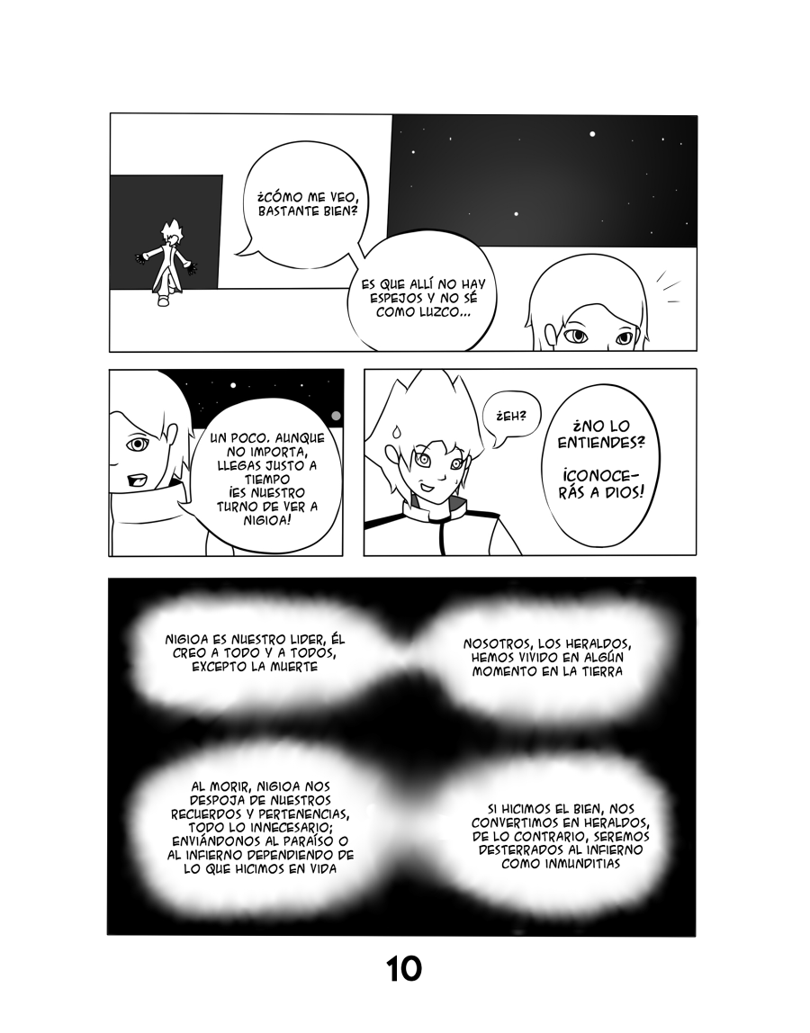 Lies of Hell es la historia de un jóven de cabello blanco llamado Omega, que despierta con una especie de amnesia; él es informado que se ha convertido en un Heraldo y se encuentra en el Paraíso. Sin embargo, a medida que avanza la historia, se dará cuenta que su segunda vida corre peligro (y mucho), pues no todos los Heraldos, aparentemente, son de buen corazón.