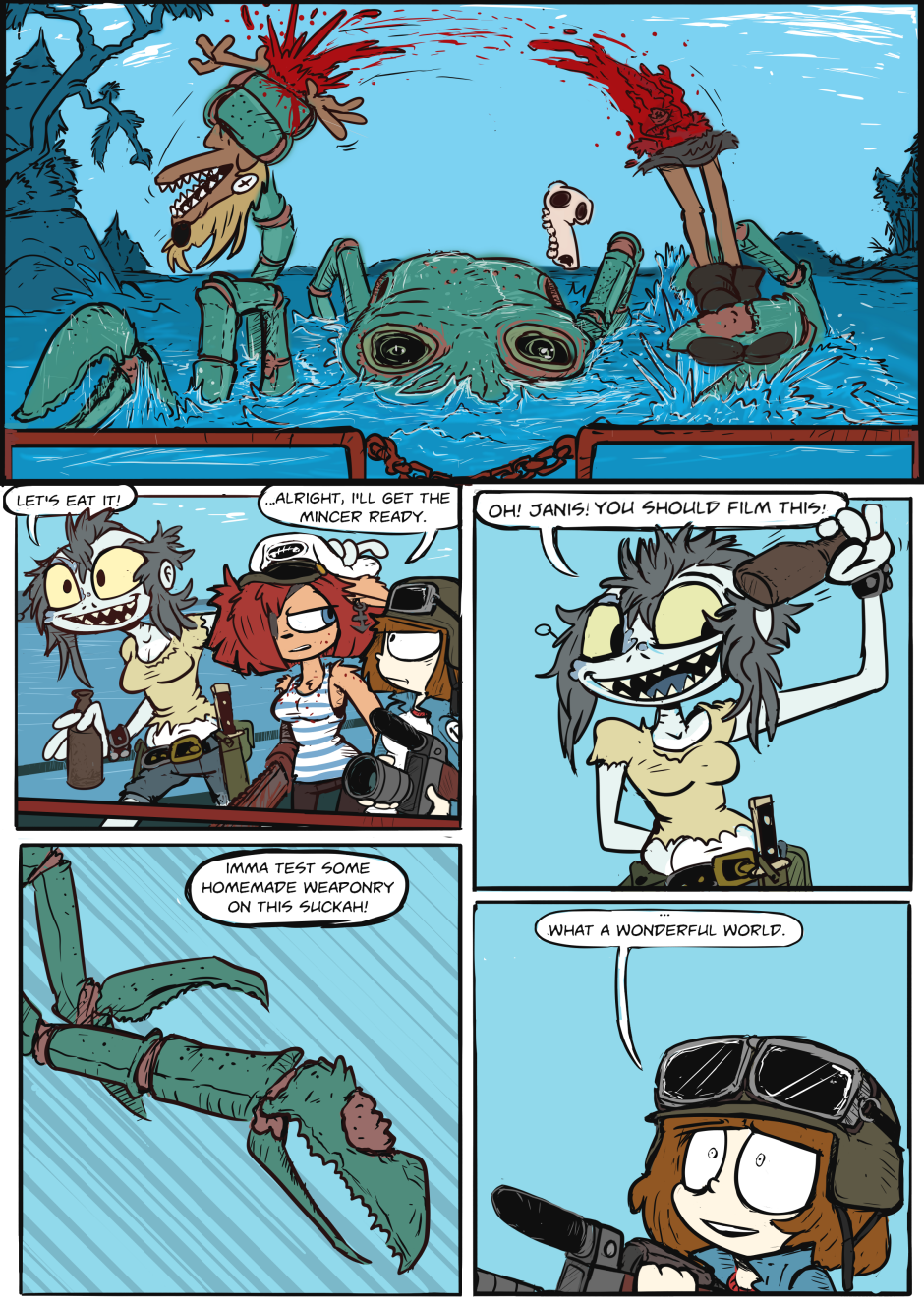 Living on an island in the Stockholm Archipelago with two local fishers, Janis is far from her safe Martian home... and she couldn't be happier. This is the misadventures of a documentarian and her bodyguards! Come along to a violent world with Janis, Wicky and Nadya as they go through the good times and the bad times of creating the first ever documentary about the forsaken, lawless and mutant inhabited planet known as Earth.