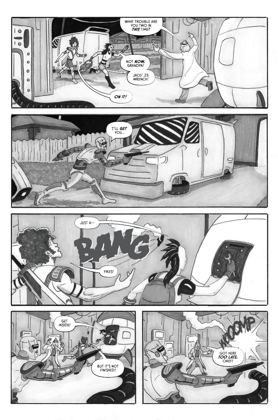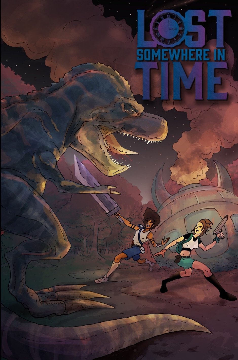 Aleeya and Jace make a living building and selling black market tech in the slums of a not-so-distant future. When an undercover cop tries to bust up their operation, they escape using an untested time machine. Now, they must fight their way through an unfamiliar land filled with dinosaurs and cave people. Will they find their way home or remain lost somewhere in time?