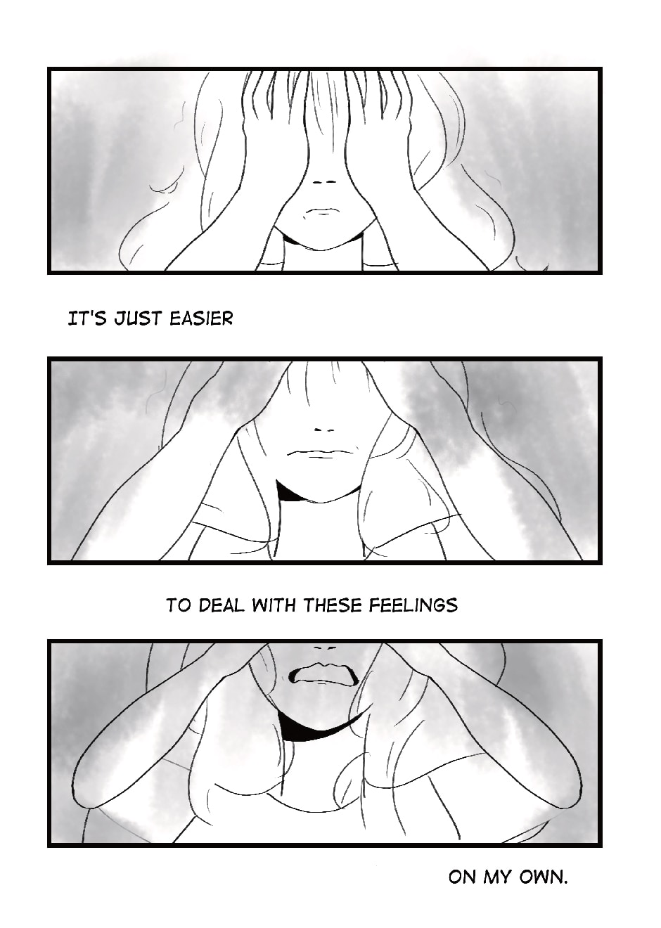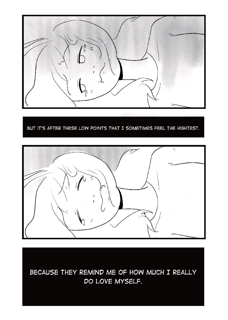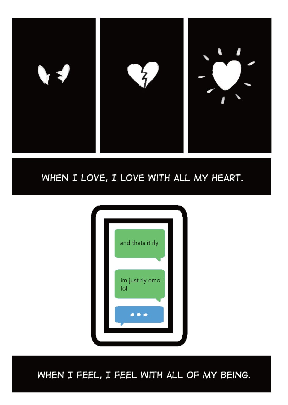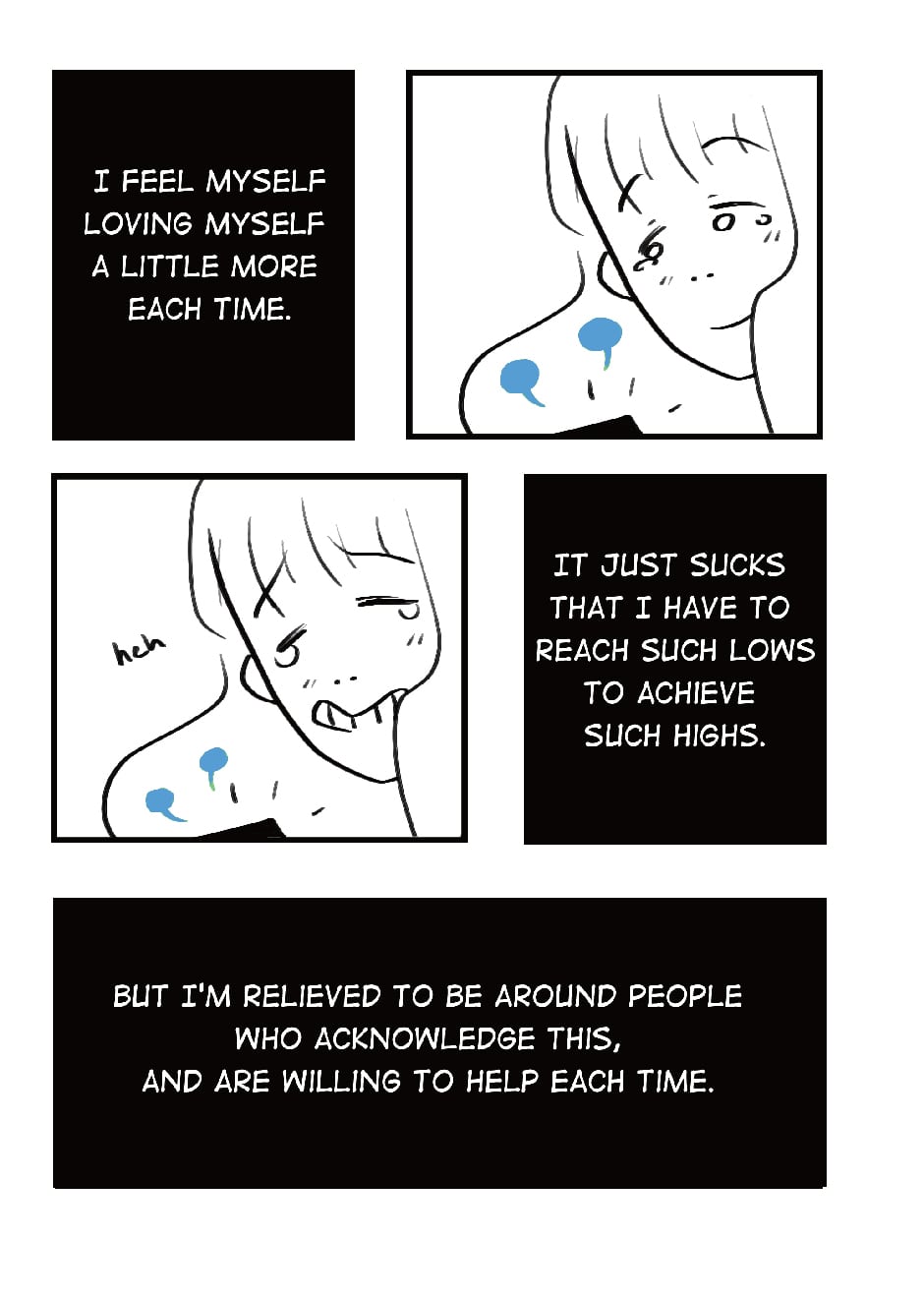 Love-Hate Relationship was originally published on Tumblr about a year ago, in September. It wasn't something I considered a comic - and looking at it, I think it's more like a loose set of illustrations, but it did resonate with a lot of people (if you've seen my previous work, you'll notice as soon as something resonates with others, I latch onto it like crazy). I got a lot of positive feedback on it and I'm glad I could help others, in a way. To kind of be all 'you're not alone in feeling like this. It's cool.'