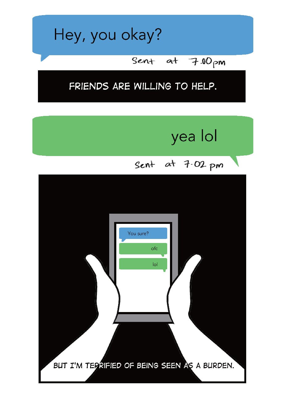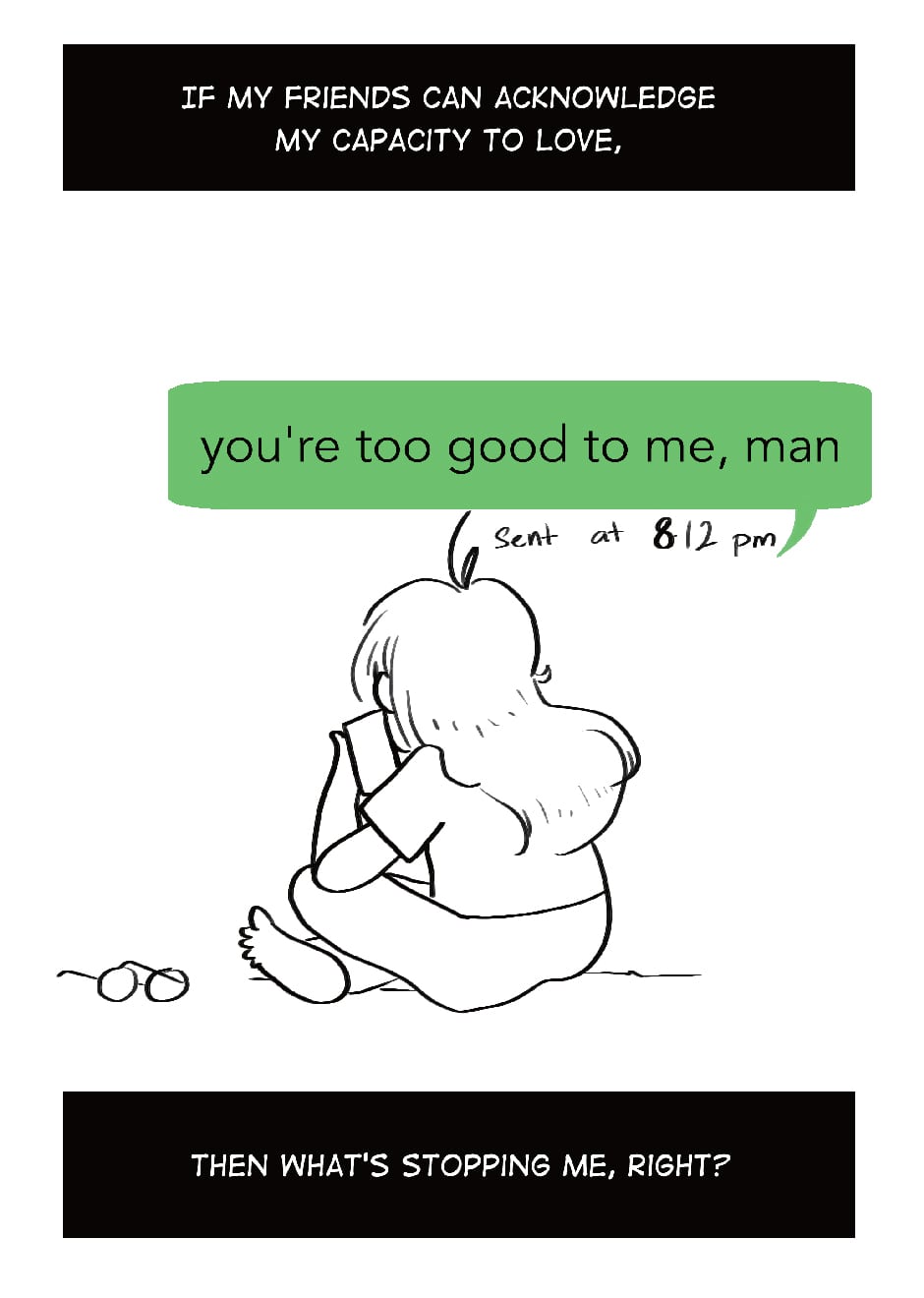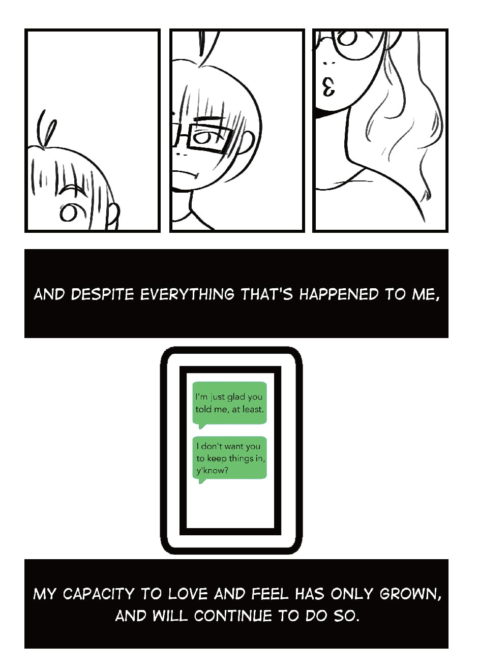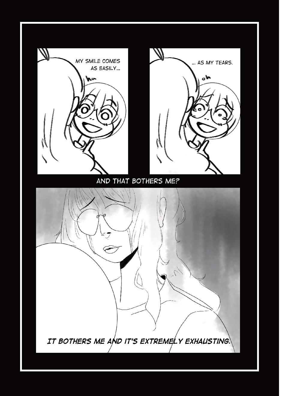 Love-Hate Relationship was originally published on Tumblr about a year ago, in September. It wasn't something I considered a comic - and looking at it, I think it's more like a loose set of illustrations, but it did resonate with a lot of people (if you've seen my previous work, you'll notice as soon as something resonates with others, I latch onto it like crazy). I got a lot of positive feedback on it and I'm glad I could help others, in a way. To kind of be all 'you're not alone in feeling like this. It's cool.'