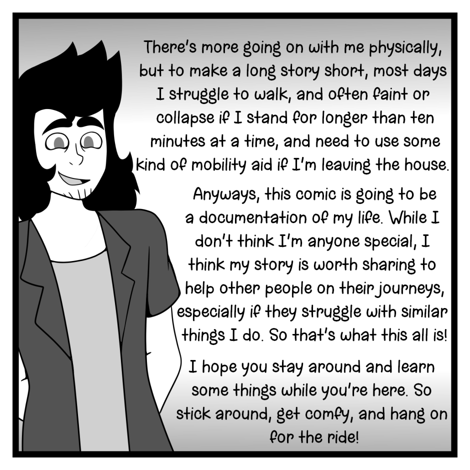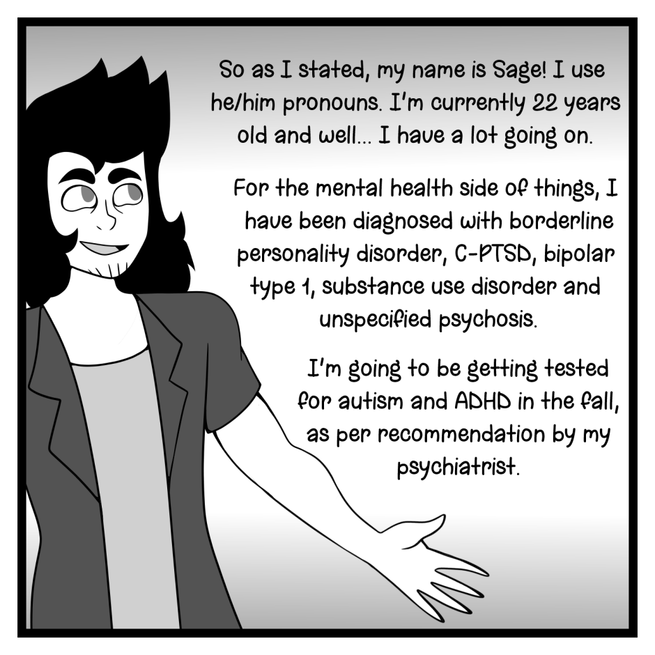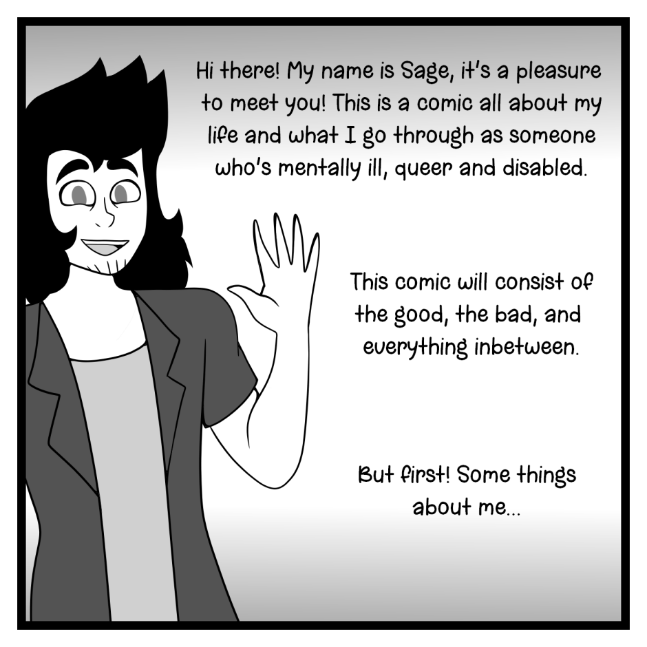 Hi, I'm Sage! Just a dude, who has a lot of issues, and wants to tell the world about it. I hope you stick around and find some relatability in this comic, and feel a little less alone in this world from it.