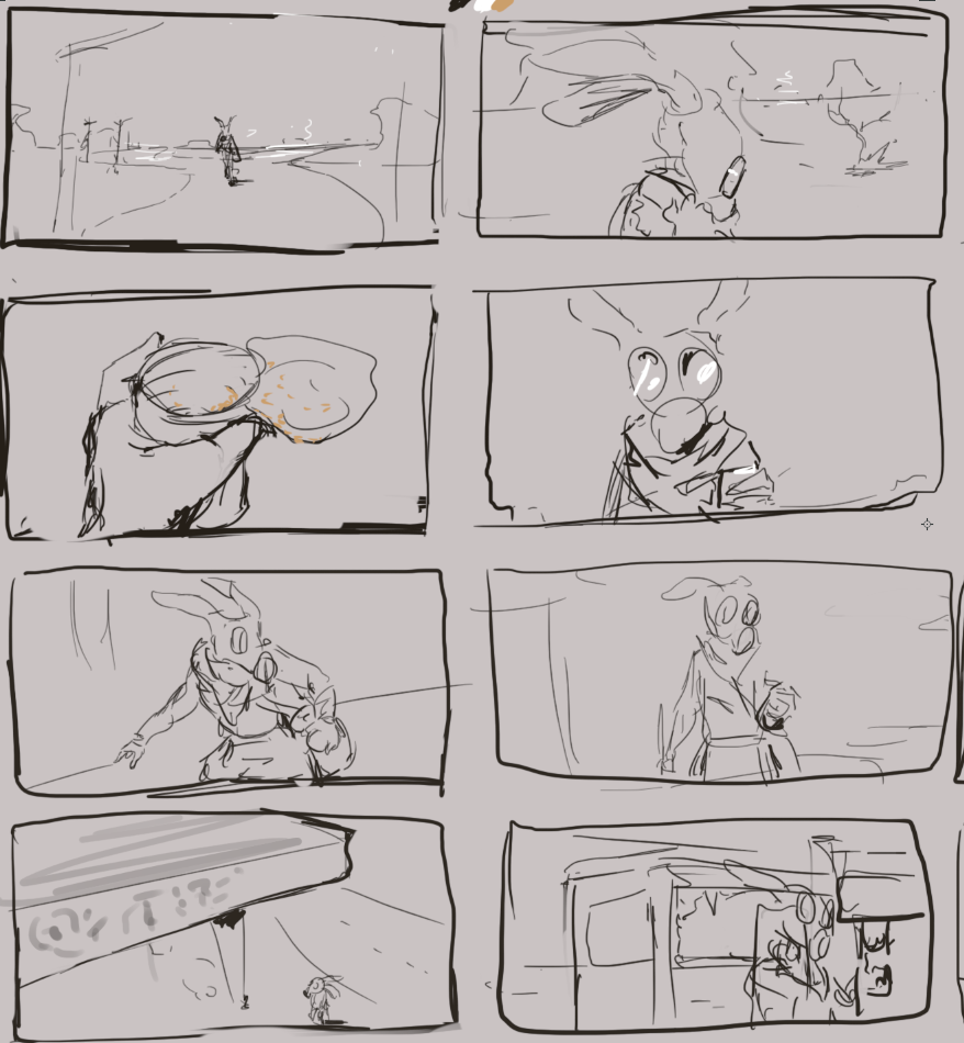 Lucid is a little character that's been with me for a while now, his story happens in a devastated earth, with little to no signal of human or animal life. Lucid is a curious bunny-like creature that's always looking for food or anything that seems to be interesting. The story would start very uneventfull and would stay that way for a while. Very little has changed in Lucid's life so far. But will that change? NEXT SUMMER ON NETFLIX nah jokes of course but we'll see if more comes out of this! Most of the art is from 2014-2015, I'm not sure when and if I'll put everything down on paper. I keep this story close to me though, so it might happen someday!