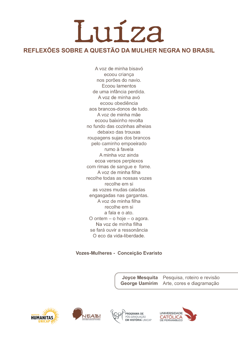 A HQ conta a história de um crime que ocorreu em 1864 na freguesia de afogados no Recife, quando Luíza, personagem que dá nome à obra, foi assassinada por seu senhor Luiz de Gonzaga Senna. A produção é fruto da conclusão do mestrado profissional em História (@ppghunicap) da Universidade Católica de Pernambuco e se propõe, a partir da vida e morte da escravizada, discutir relações de poder, trabalho, sociabilidade e gênero na cidade do Recife da segunda metade do século XIX. Para além disto, busca refletir sobre a questão da mulher negra do Brasil tencionando o olhar para alguns casos que apesar de serem atuais, têm muito em comum com o objeto da pesquisa.