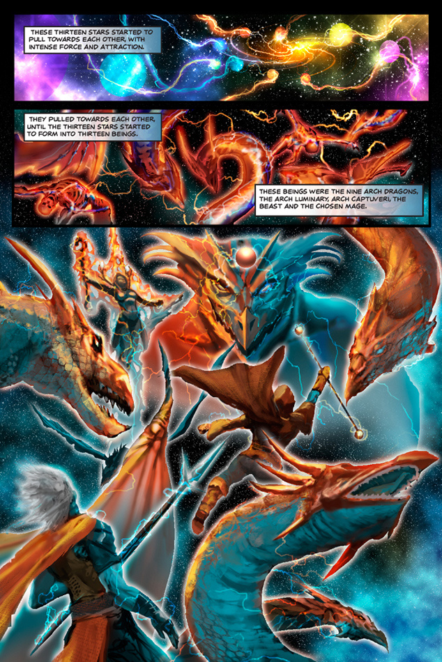 "Luminous Ages is an epic universe of fantasy and magic which starts at the dawn of time. Thirteen god like beings and dragons are formed with the power to manifest dreams into reality with Captuveri and Luminary magic. Alliances of good and evil are struck and the battle between the Nightmare and Tranquil realms have begun! The universe is limitless, unexpected and surreal. Be prepared to be captivated like a Captuveri mage or illuminated by a Luminary!”
