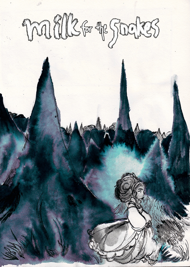 MILK for the SNAKES is story set in fantasy finno-scandinavia in the 1800's about two entities fighting over claim of a small village & the inhabitants of it being used as pawns in this battle with themes of bodyhorror, sex and finding the courage to reach for what you want.