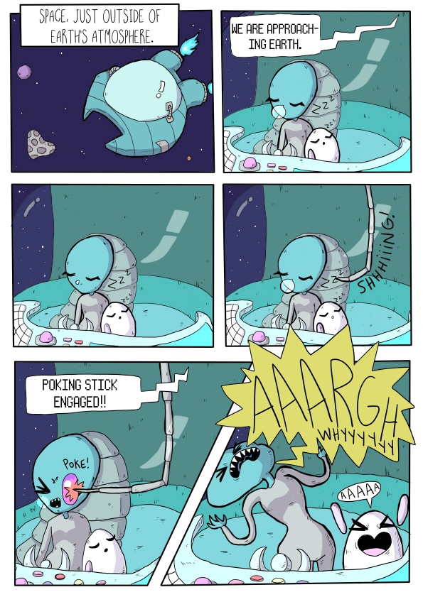 Kaz the alien crashlands just outside of the witches' treehouse.