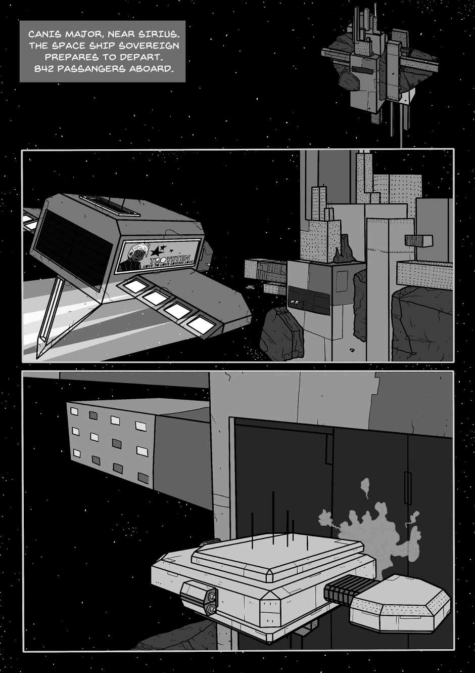 The crew of the luxury space ship Sovereign welcome their new captain aboard. The captain, a veteran soldier just a few years after the abrupt end of a long and brutal war against an alien race.