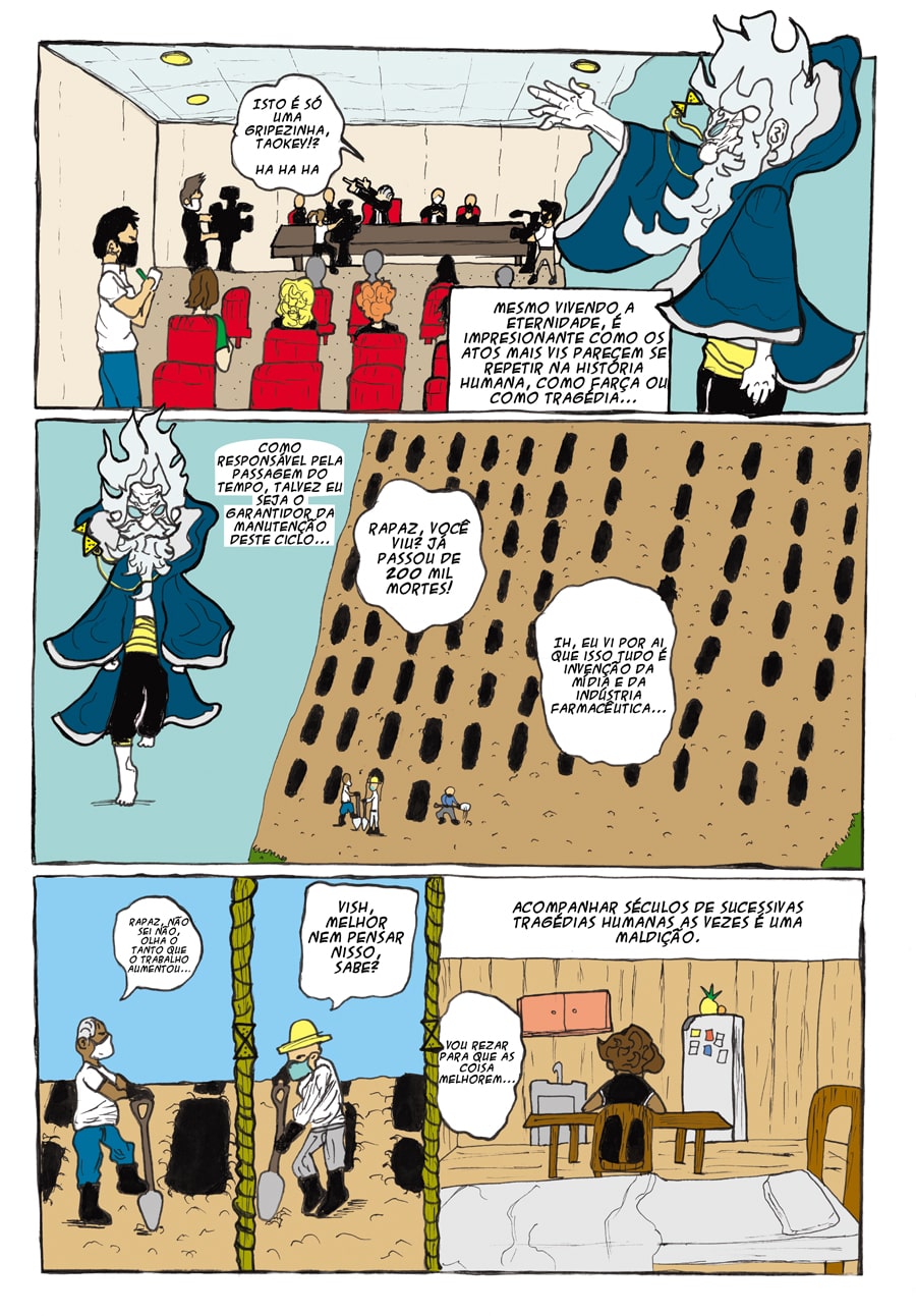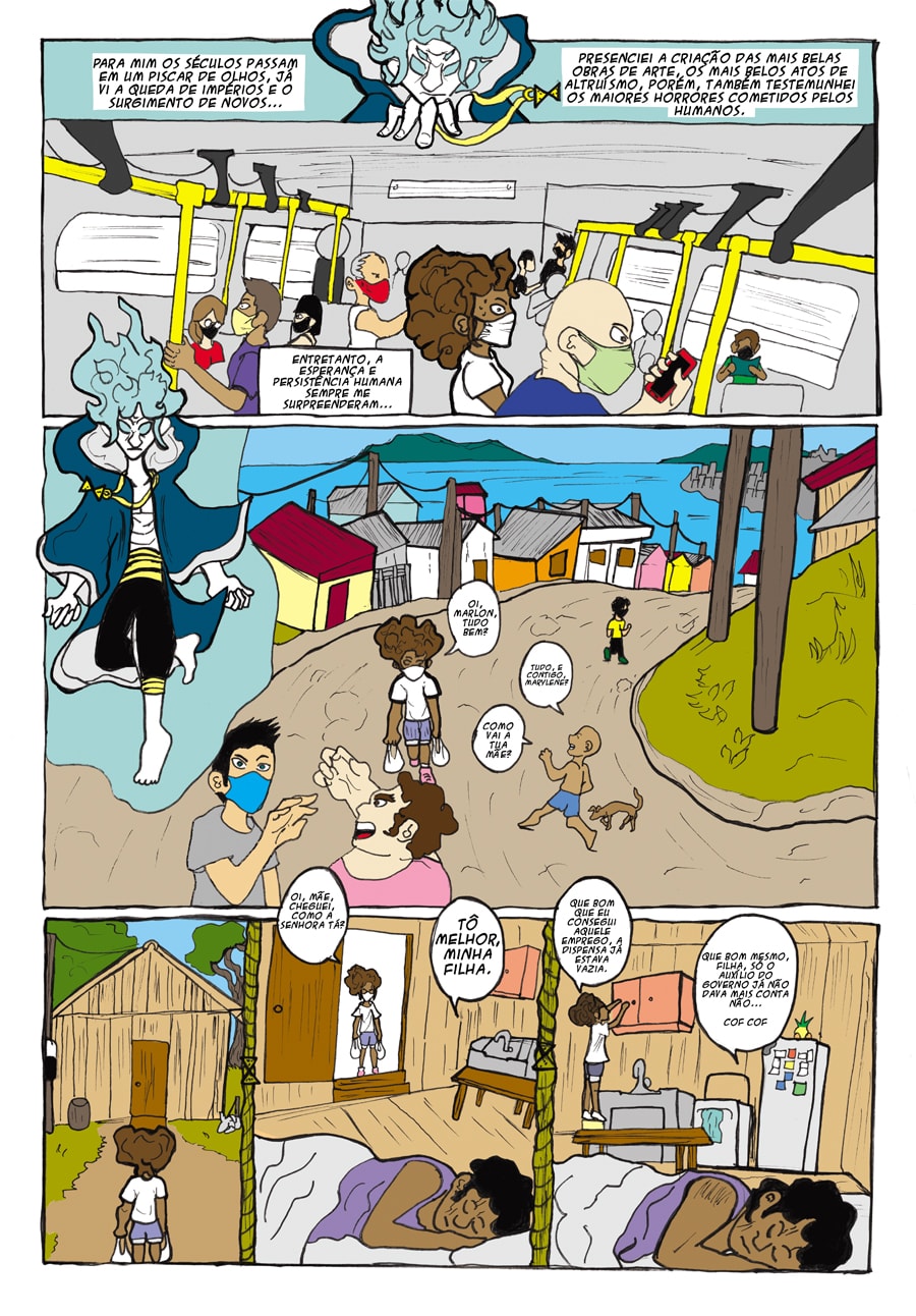HQ publicada na revista Nonsequitur que faz parte do projeto Oficina de HQs do IFRS- campus Canoas. Maldição é um quadrinho que mostra algumas das contradições e dificuldades enfrentadas pelos trabalhadores durante a pandemia de covid-19, porém com um toque de fantasia, já que há um observador milenar presente na obra...