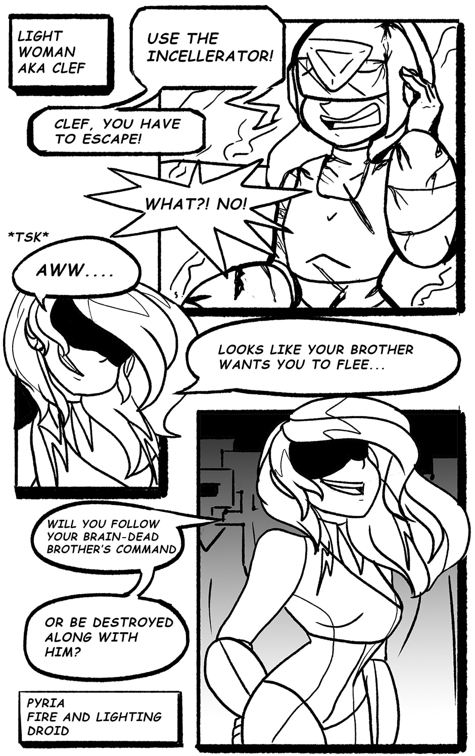 It's the year 2XXX. A robot known as Clef races across the battlefield to rescue her brother, but is blocked by an android from the rebellion named Pyria.