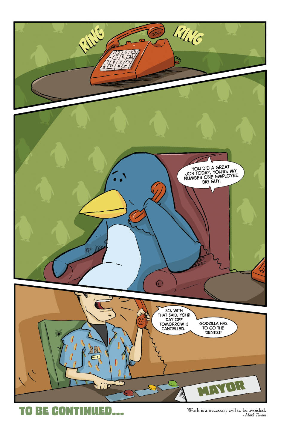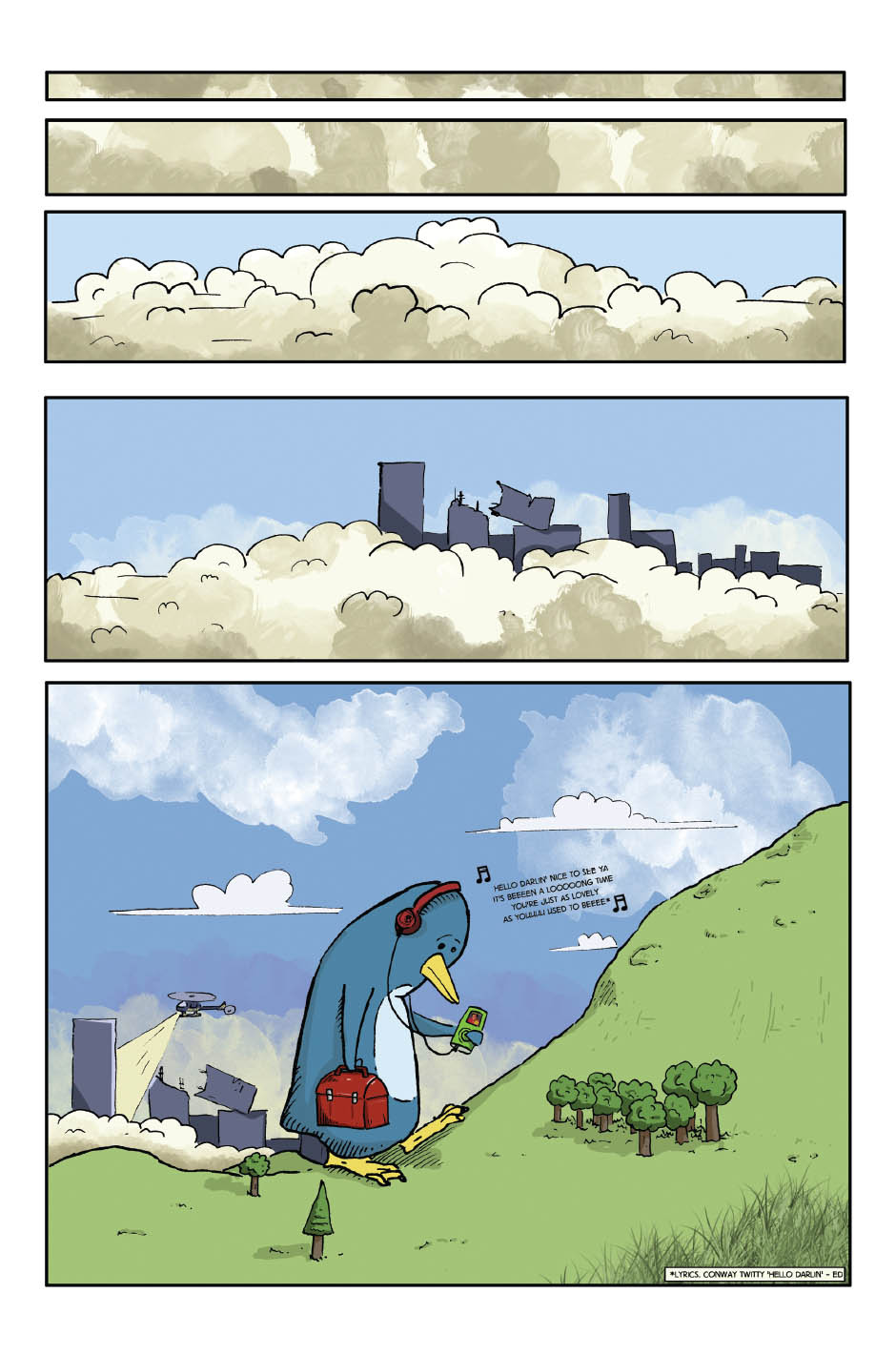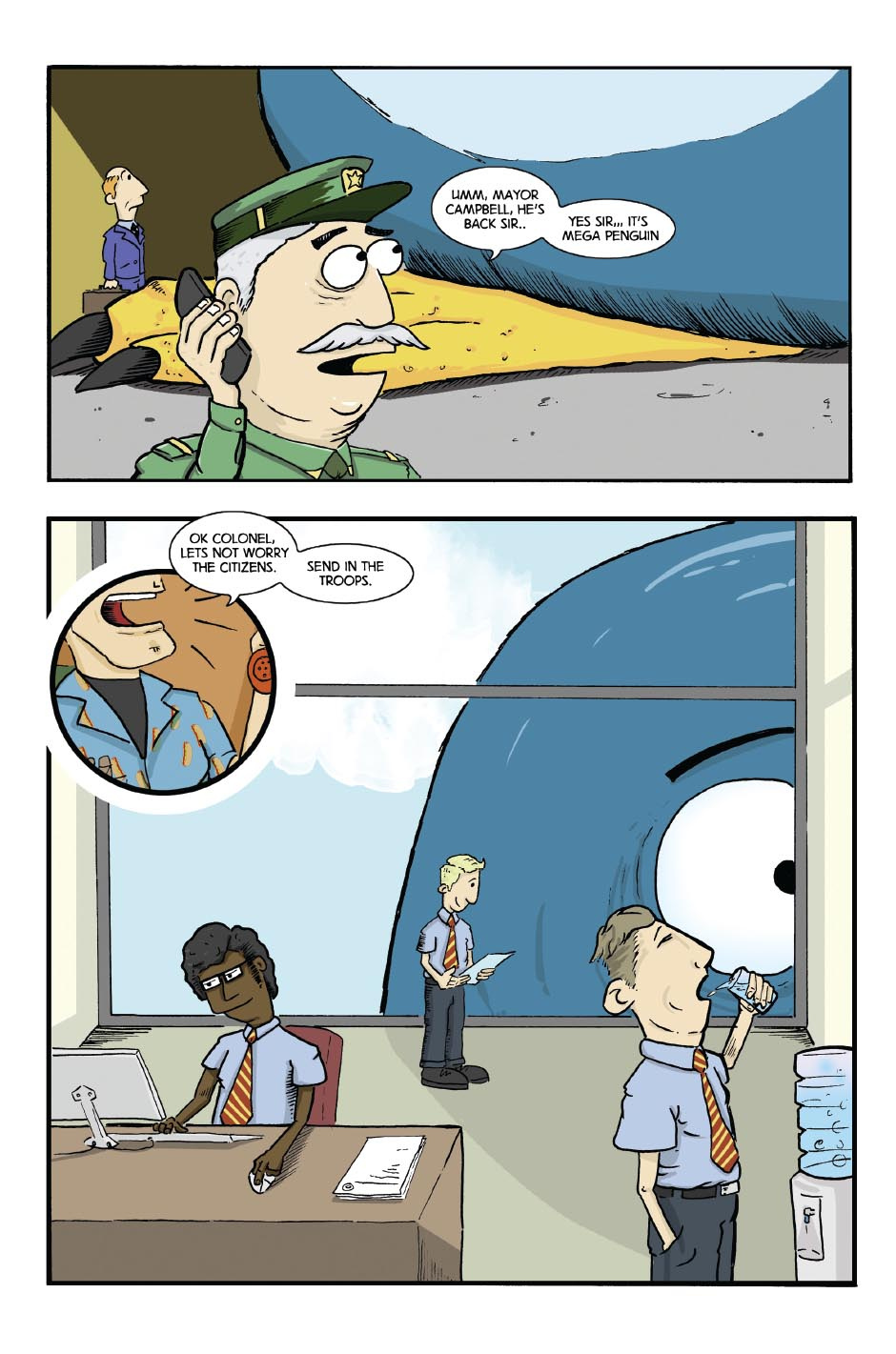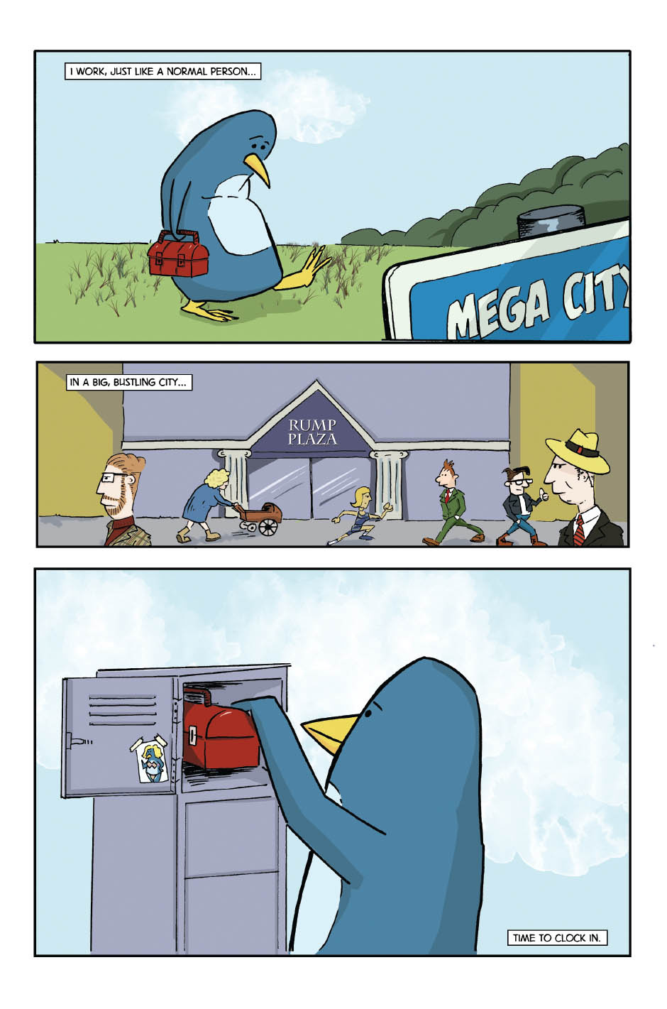 Eric Ridley, the giant penguin goes about his daily business – which happens to be the chaotic destruction of Mega City.. A fun little tale, for all ages.