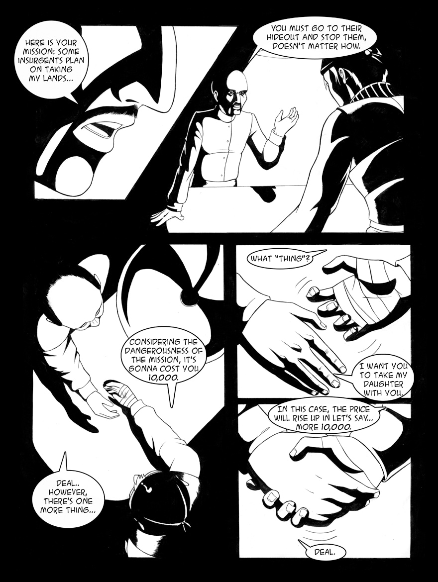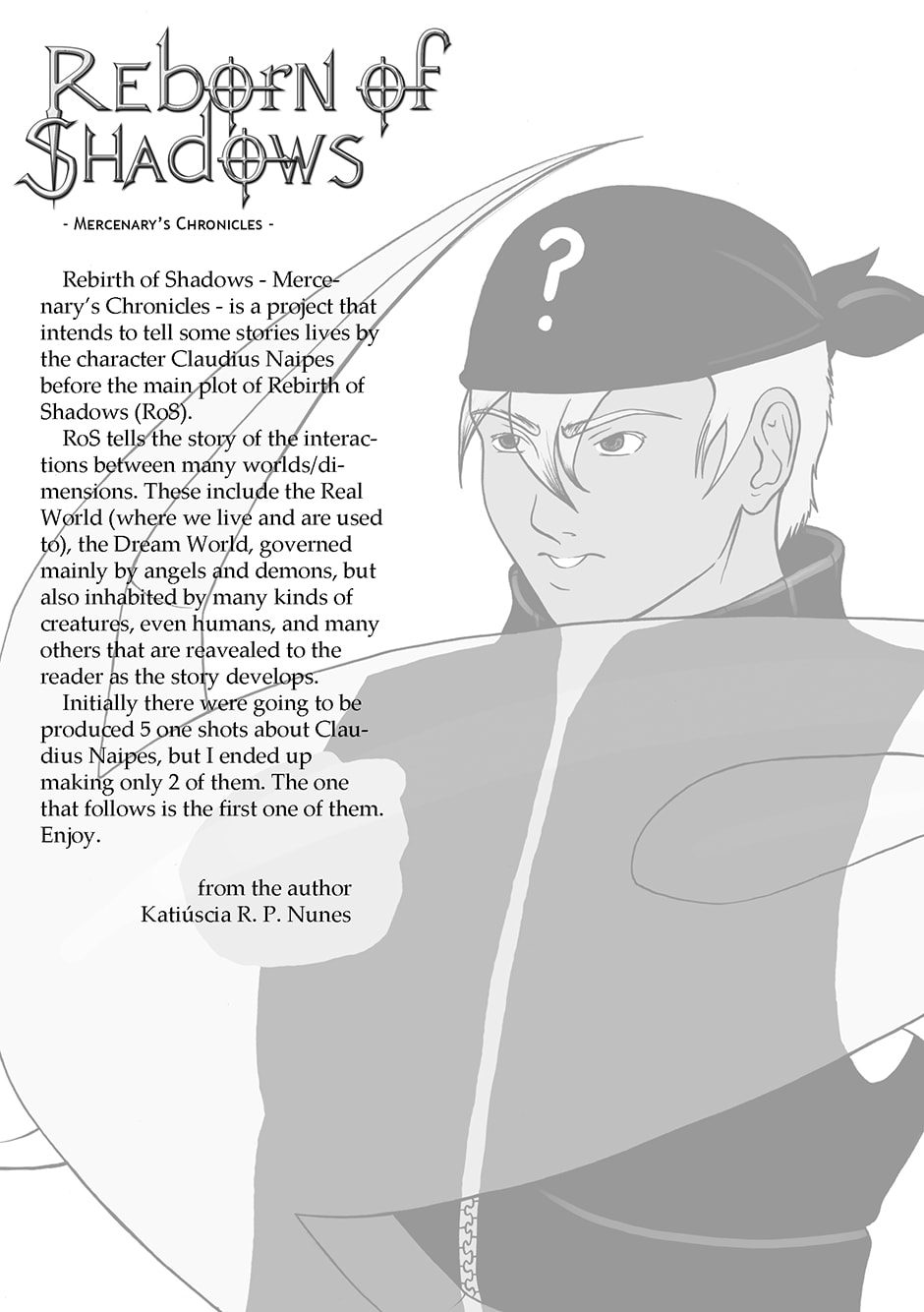The Rebirth of Shadows story (back in the day it was mispelt as Reborn of Shadows) was created in 2003. Mercenary's Chronicles is a spin off series about the character named Claudius Naipes. He is a human mercenary in a world paralel to ours named Dream World, majorly inhabited by angels and demons, and each episode of the series depics a different mission of his. It was made in 2008, so it's not top notch quality, but I'm still proud of it. I hope you enjoy it as well!