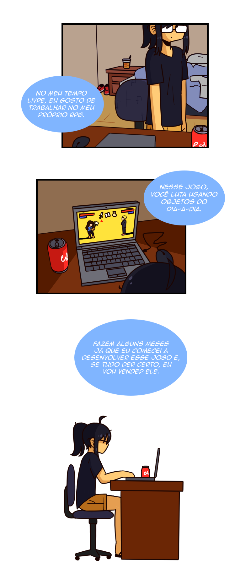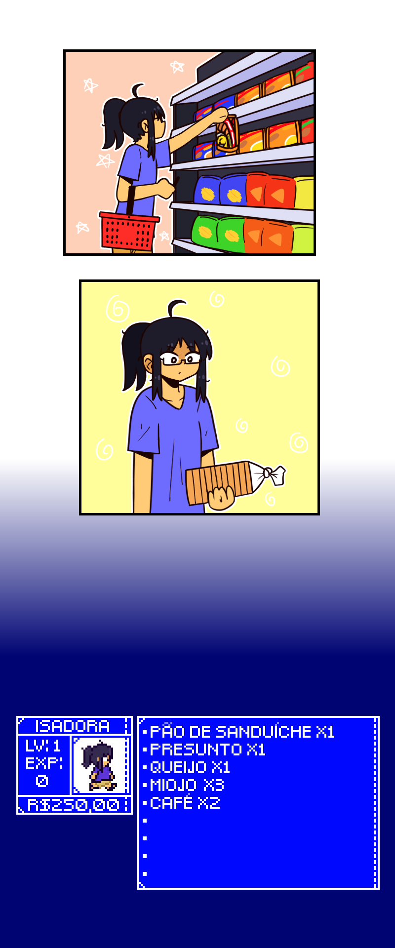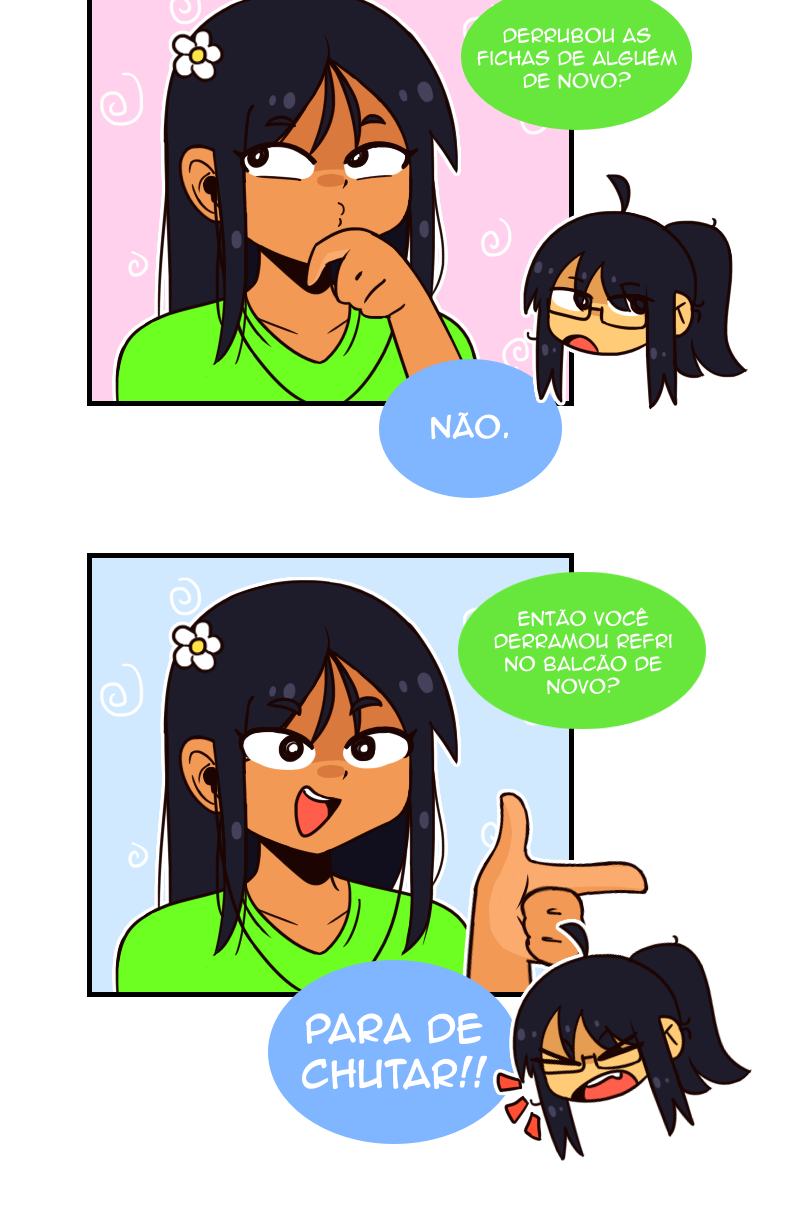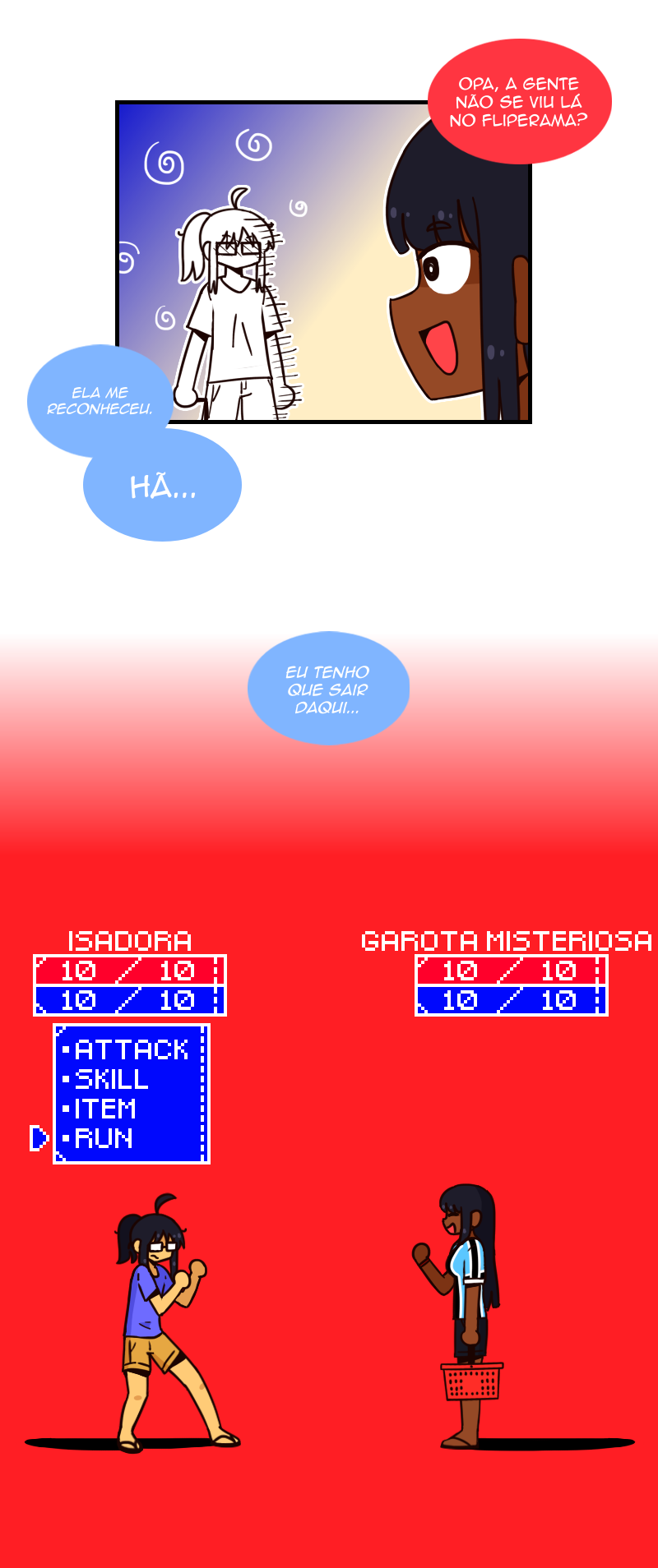 A Isadora é uma estudante de design de jogo que está criando um RPG no seu tempo livre. Um dia, ela se constrange na frente da Yasmin e tenta o máximo possível evitar se deparar com ela de novo, até que ela descobre que as duas estudam na mesma universidade!