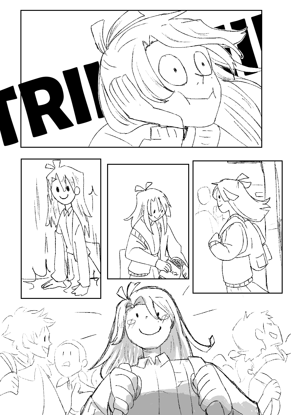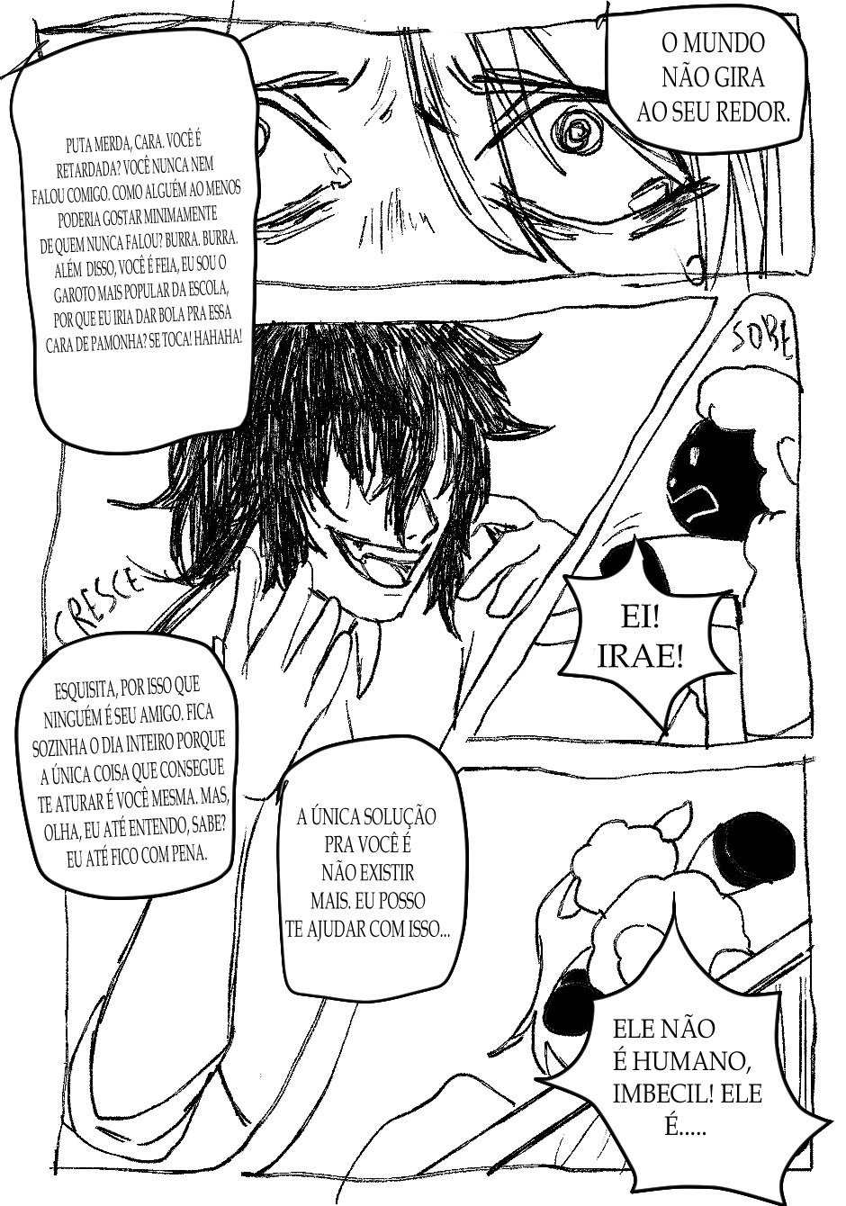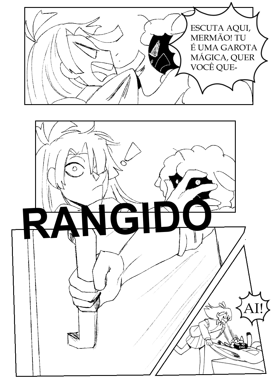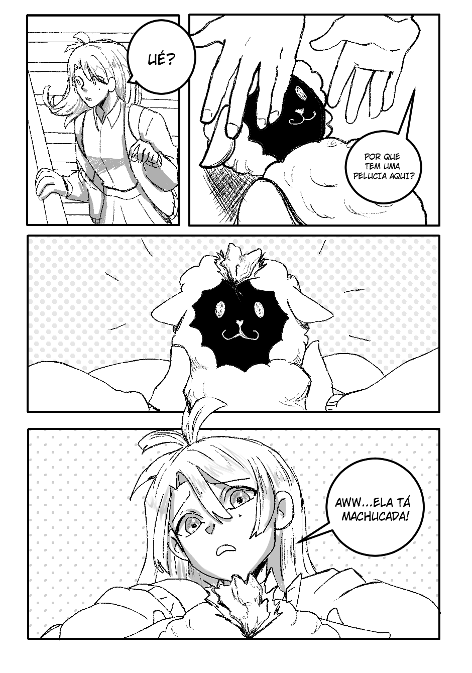 Fora isso, as ações estão bem claras, legíveis, e achei que você soube fazer uma narrativa visual bem boa de modo geral. Talvez pudesse focar um pouco mais na transformação do menino no penúltimo quadrinho? Somente o penúltimo quadrinho pareceu um pouco confuso. Não sei se seria do seu interesse alterar ou não.
