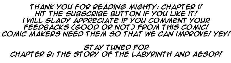 Hoping to fight and end the evil God's reign, a girl journeyed to find the mightiest men across the land to fight alongside her. Her adventures won't go easy though, as most men included in his to-find list has some scary stories behind them: The Minotaur - a half-man, half-bull man-eater. The Sphinx - a ridlling pyschopath. And Medusa - a woman with eyes that can turn someone into stone. Question is: are their stories true? Find out in this crazy epic - Mighty!