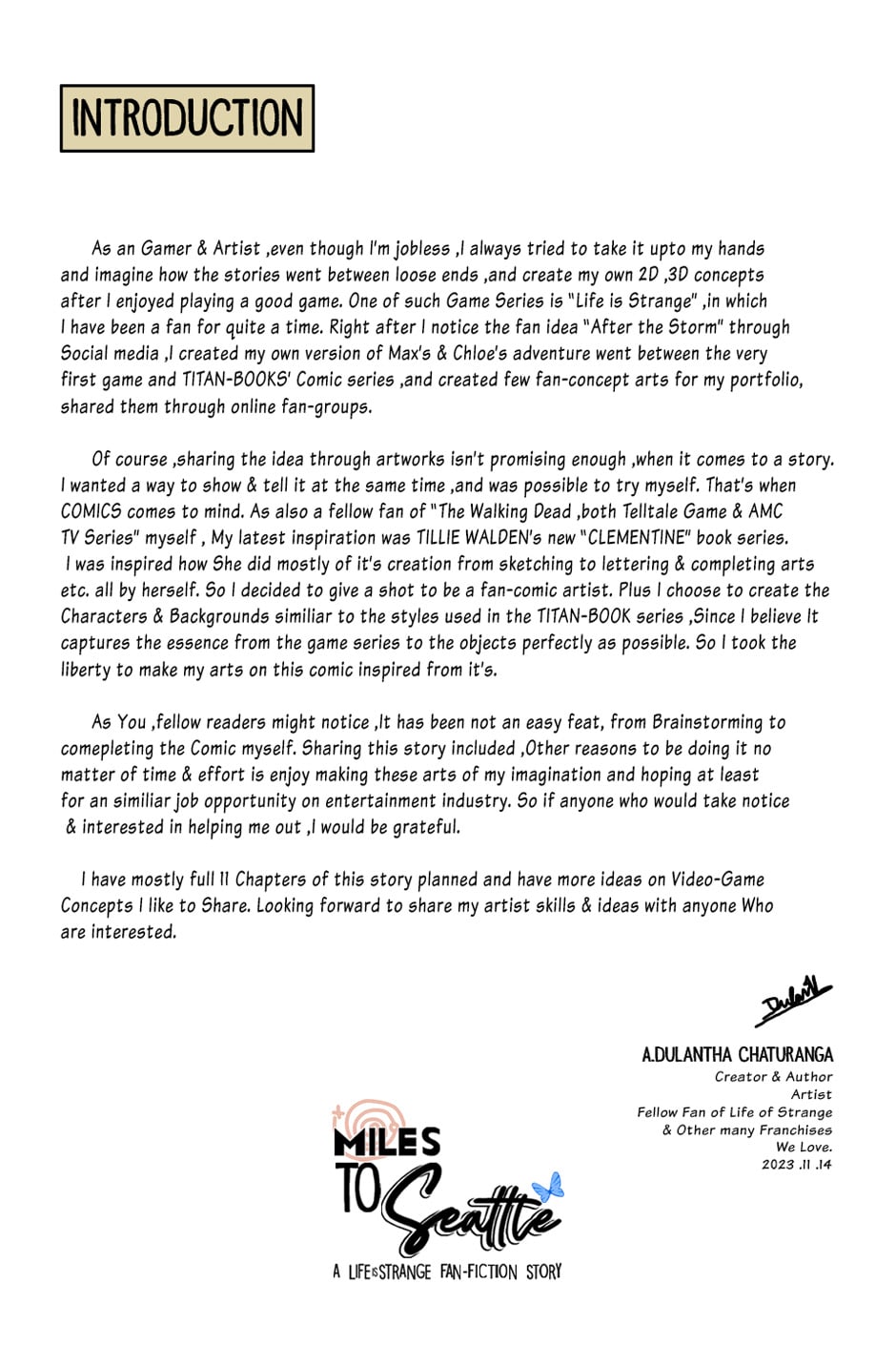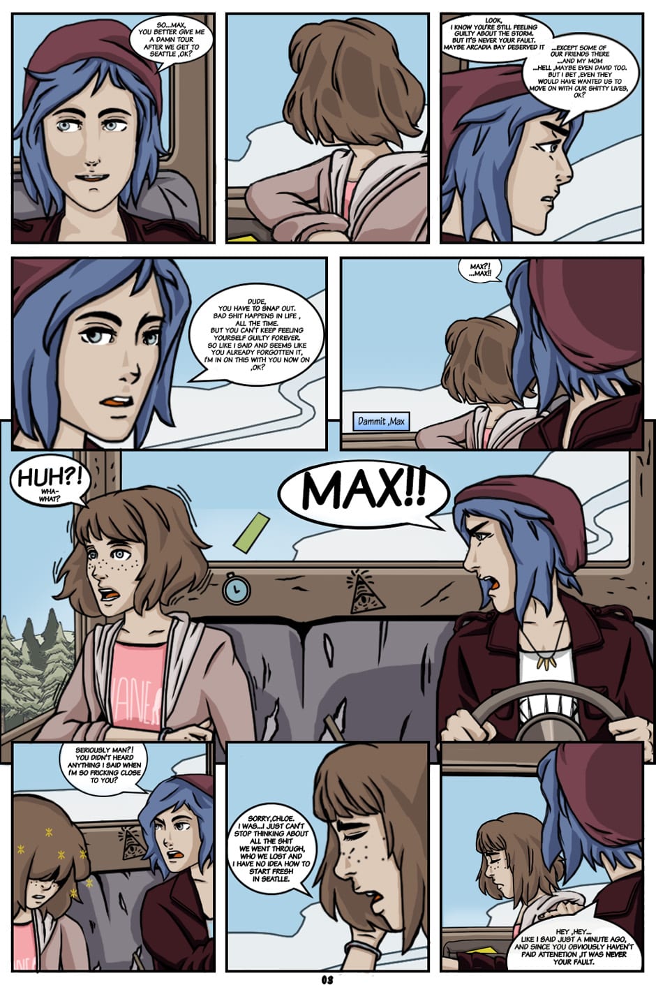 A Comic Series I started telling a story I craft ,about Max & Chloe's Adventures between the timeline of Life is Strange Video-Game's "Sacrifice Arcadia Bay" Ending and LiS Titan-Books' Comic series ,featuring a tale of them facing the Consequences of the Storm event while trekking their way to Seattle across places those aren't safe as they were before.