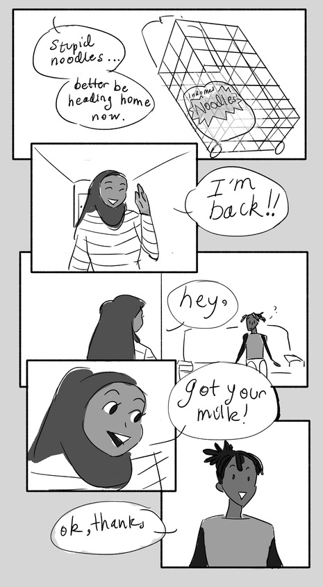 It’s really good! I love your art style & expressions, and everything flows nicely from each panel to the next. You also don’t see many Slice of Life genre comics surrounding Muslim culture, so that’s awesome. It’s like you get to connect people by showing these every day situations that many people go through regardless of culture, if that makes sense lol. I don’t know if you ever plan on making more comics - maybe your major is comics? But yeah you’re really good! 😊