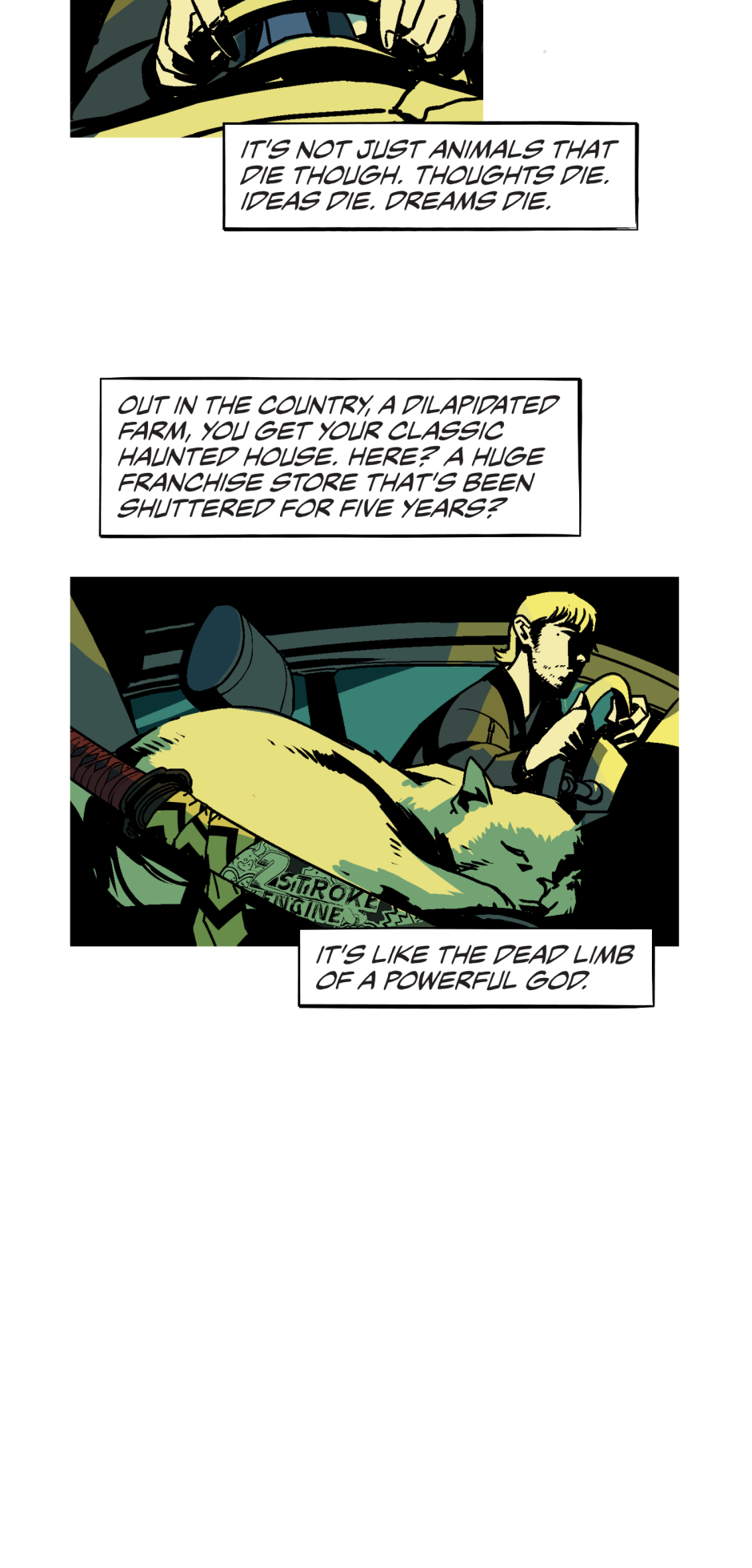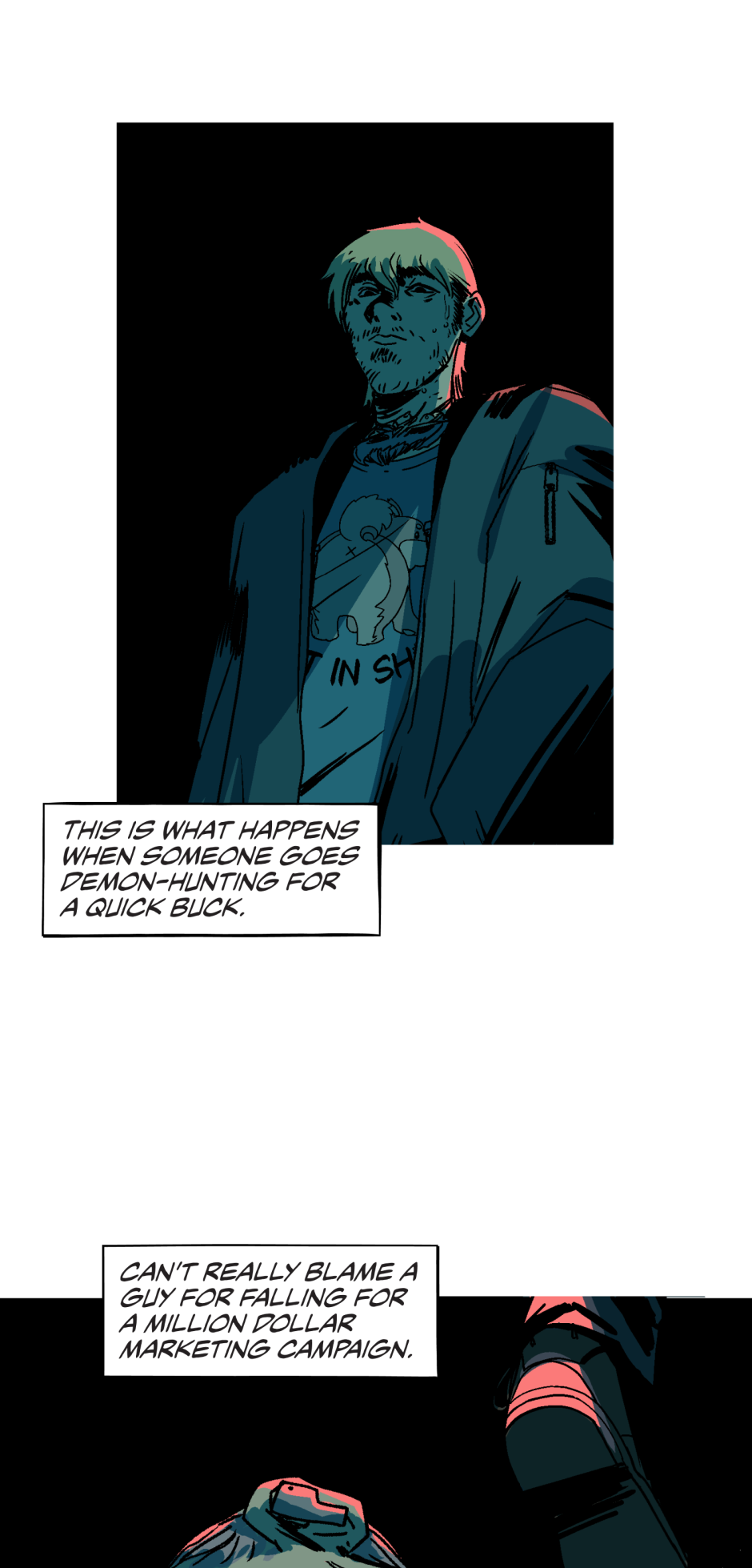 One half John Constantine, one half John Dies at the End, one half Chainsaw Man. That's three halves!