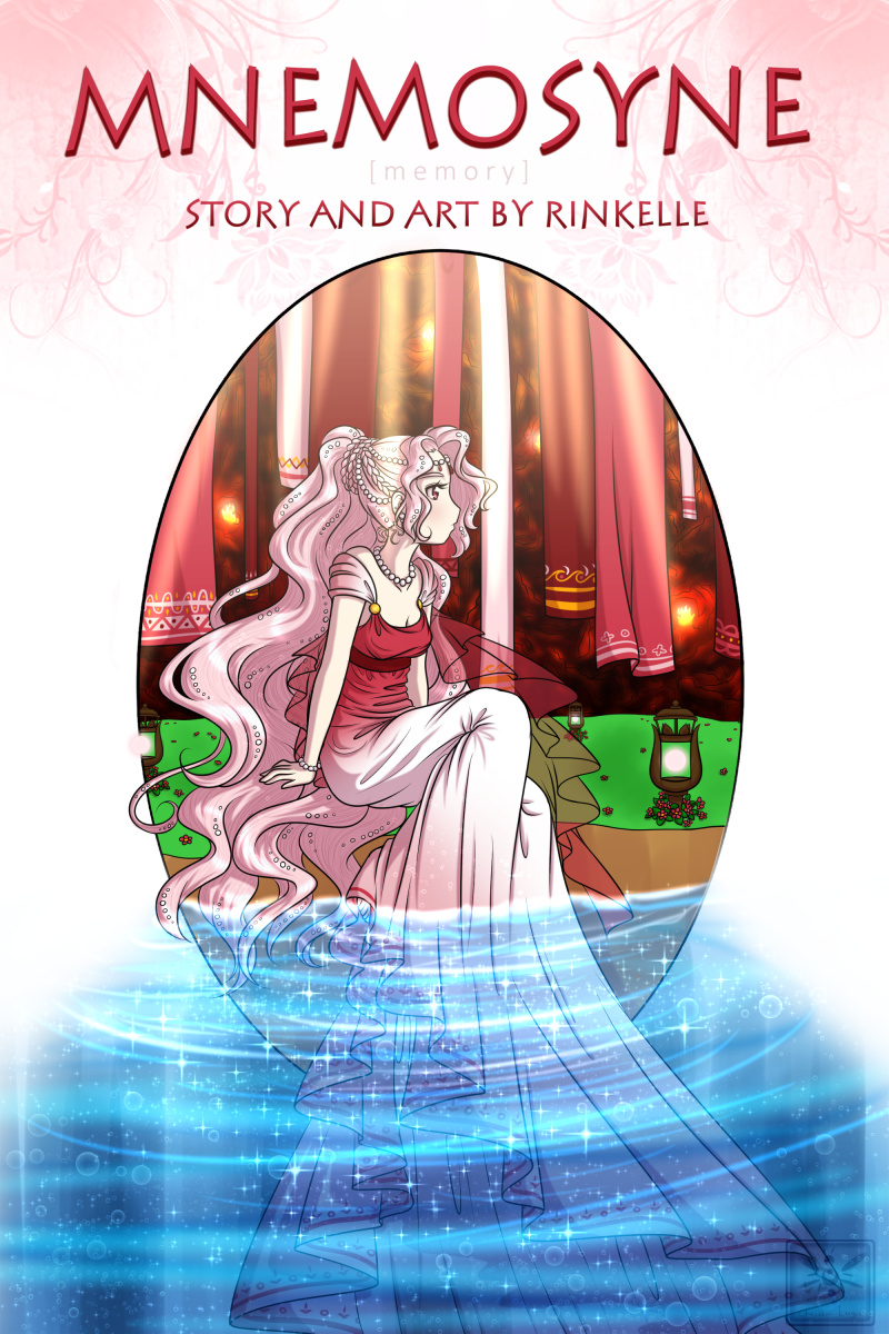 Mnemosyne is the personification of memory in Greek mythology. She's the daughter of Gaia and Uranus, and mother of the 9 Muses by Zeus. I'll explain the other concepts/ideas/what-have-you from mythology I put into this as they're shown in the comic.