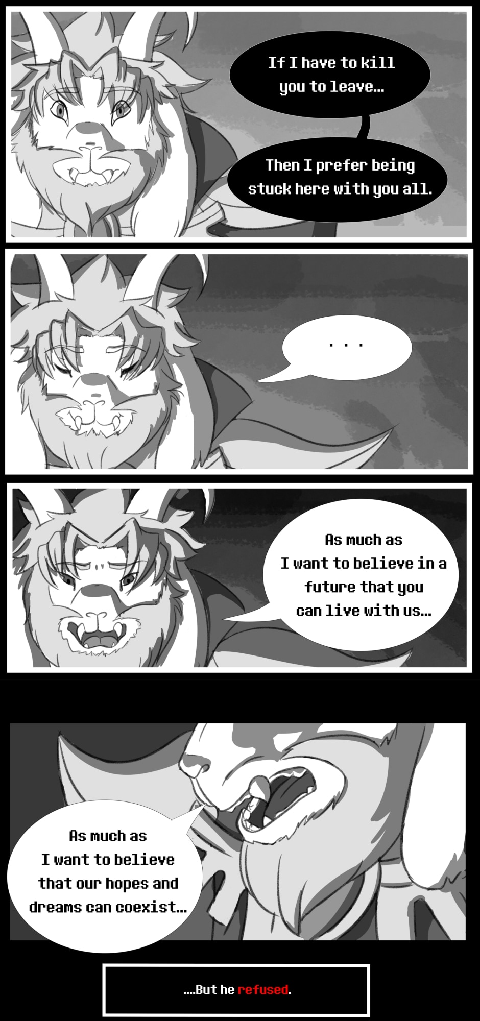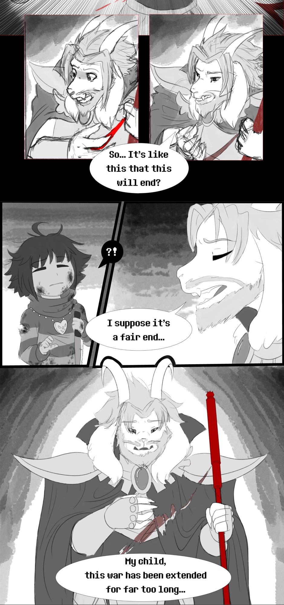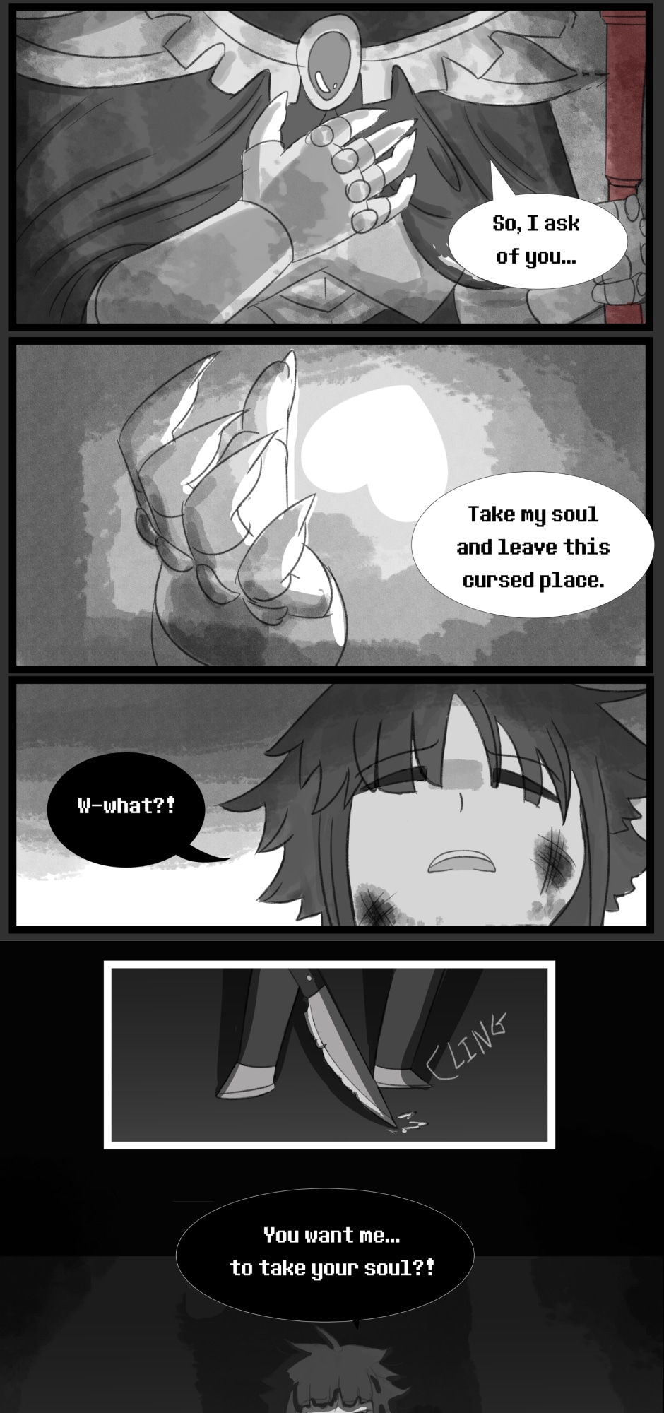 After RESETting, Frisk found themselves having to travel alone through the Underground once more, in a attempt to leave that Kingdom without more sacrifices. However, their final confront with Asgore took an unexpected turn when the king of monsters decided there was only one way to end the conflict between humans and monsters, once and for all...