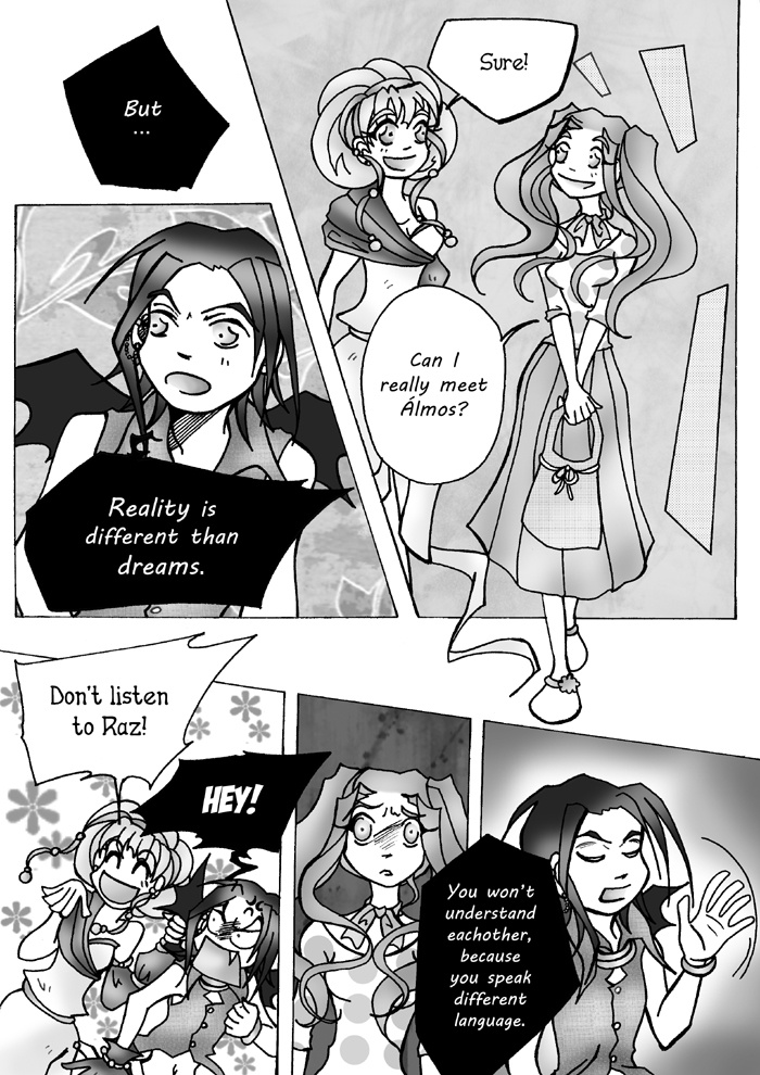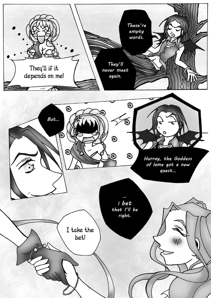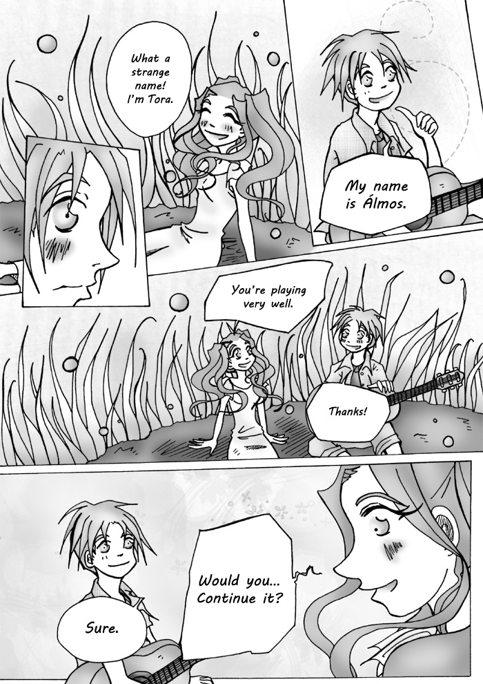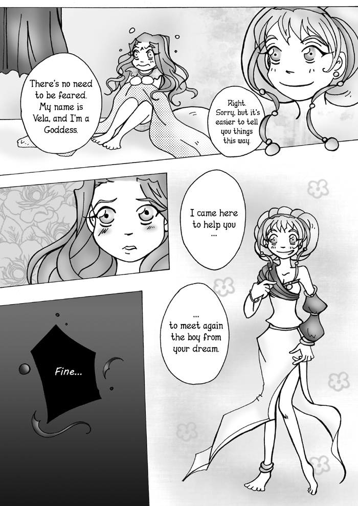 Tora meets Álmos in her dream, and they fell in love with eachother at first sight. They promise to meet again, but they don't know that Vela – the Goddess, and Raz – the Demon is watching them. Rez doesn't believe in love, while Vela thinks the lovers can meet again. They make a bet.