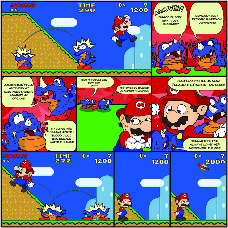 Ah, Super Mario World. A fresh new game with new worlds to explore, new items to collect, and new enemies to jump on. Quick and painless jumping...right?