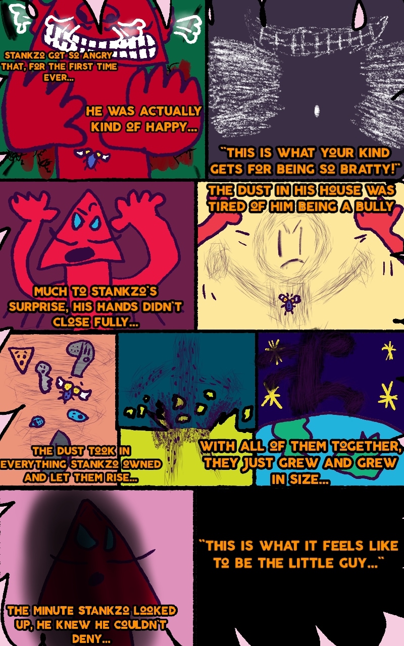 Remember to always be nice to everyone no matter their shape or size....and also clean the dust in your room before it cleans you!