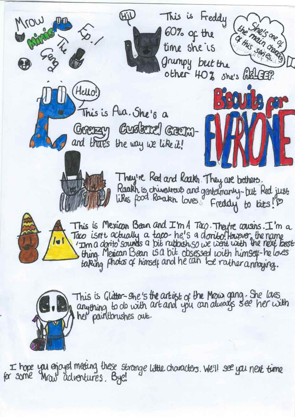 Meet the characters of Mrow Minis- Freddy, Ava, Raakh, Red, Mexican Bean, I'm a Taco and Glitter.