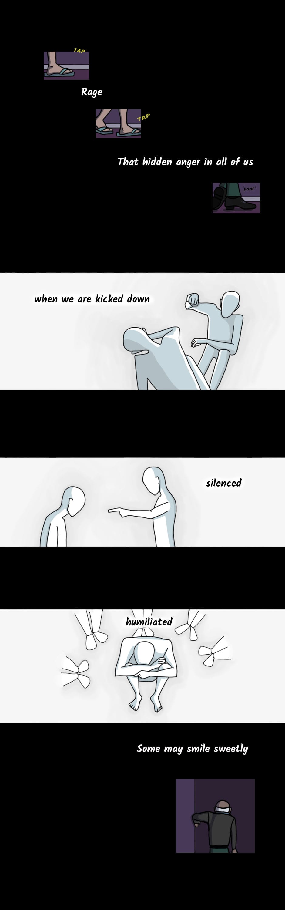 Hey this is my first comic. Basically it's about a college girl who is increasingly frustrated with her life. One day, a person offers a pill to "cure her rage". The next day, someone who had wronged her is found brutally murdered. Could it be her who did this?