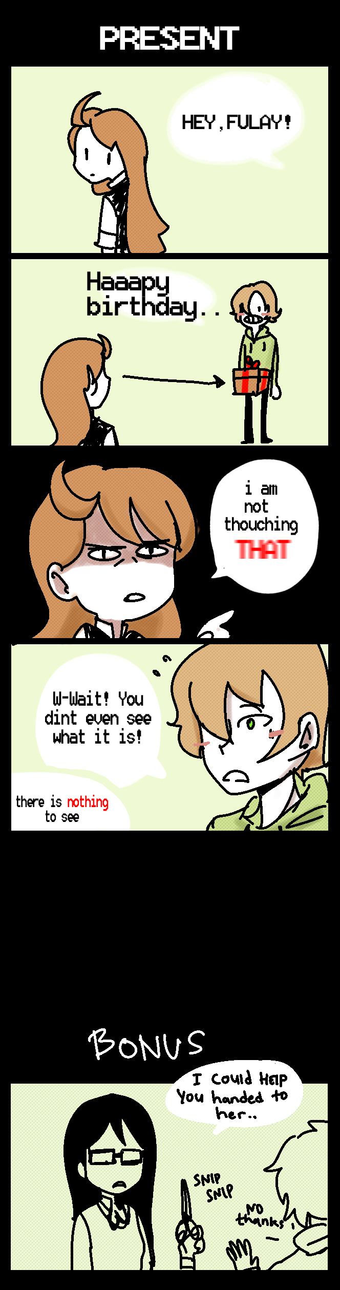 A "low hanging fruit joke" ...hehe get it? cool, the first comic is about dick joke huh?