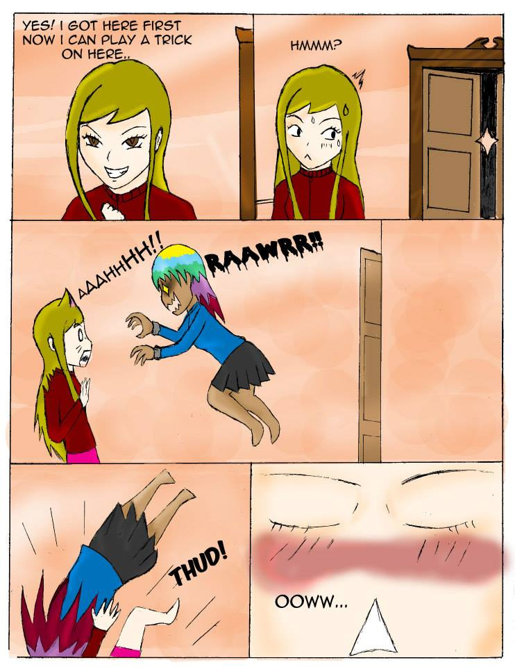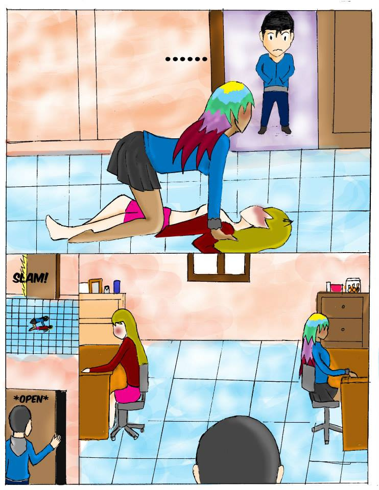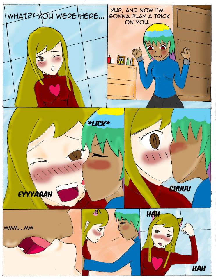 The girls decide to play tricks one another ended up in a rather comprimising position, which is almost seen by the unsuspecting guy.