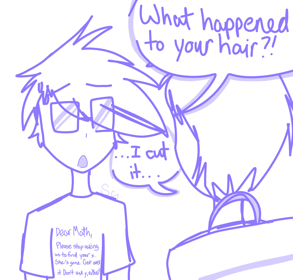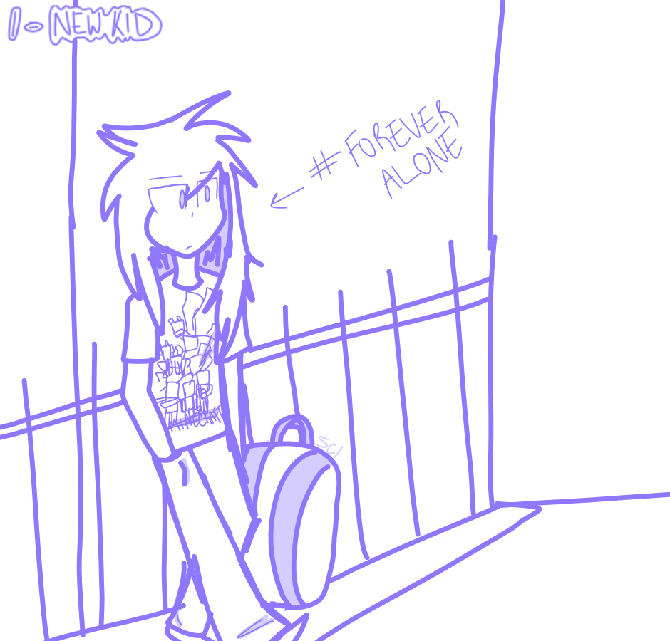 My first day at my new school. The first person I talk to is one I'll never talk to normally again. (Sorry for the lazy art. It's super late at night and I can't)