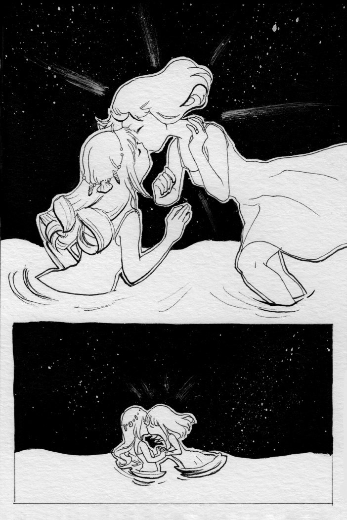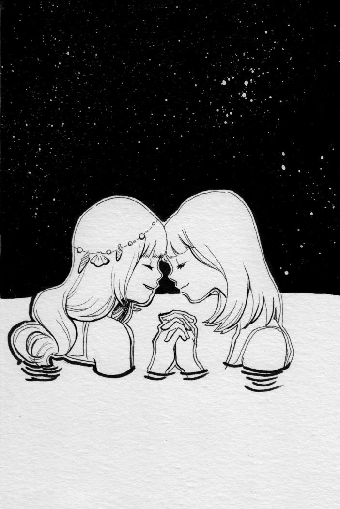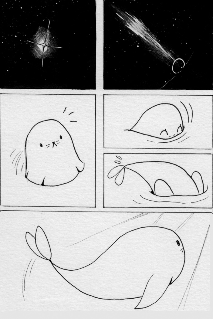 A young selkie in love with a star. This history was made to practice, the original characters and story belongs to Elisa (https://twitter.com/enredadiza) thanks for letting me play with them! I hope you like it.