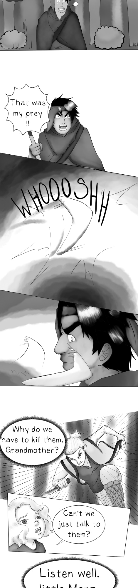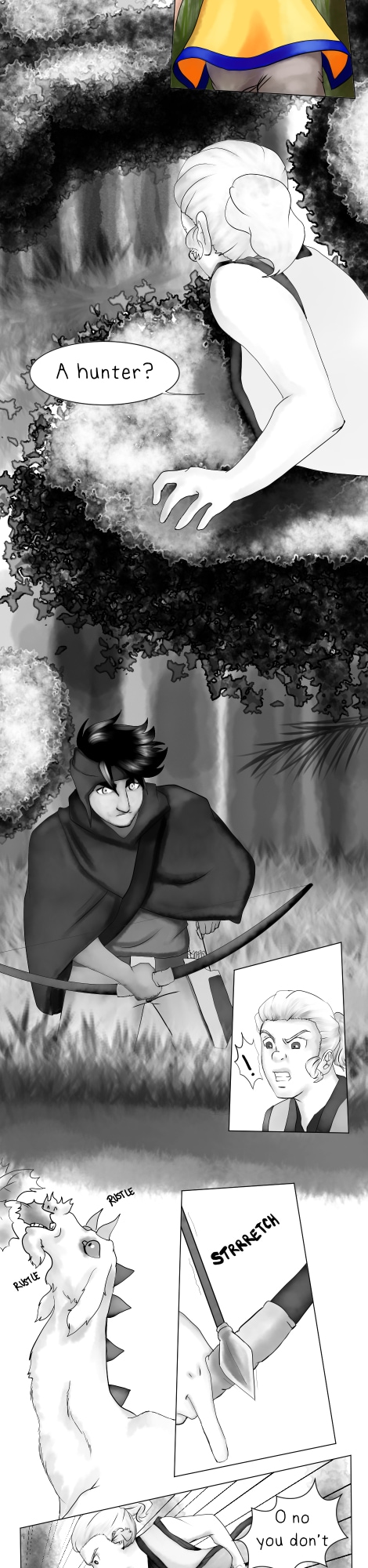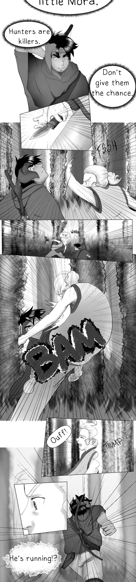 While on duty, Mora encounters a hunter at the edge of the sanctuary. Tribal law requires trespassers be executed to prevent discovery. "Hunters are ruthless killers." At least, that's what she's been told. She must protect her tribe and the creatures taking refuge there. But... this hunter seems different. Are they really all bad? Will she be able to carry out the sentence?