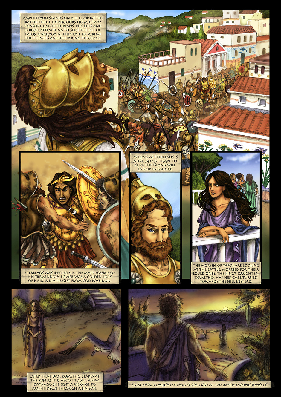 Mythologia by Centrifugal Stories is a graphic novel series introducing the authentic stories of the ancient Greek heroes. The art for the first issue is drawn by Varvara Yaikova, while the art for the prologue was drawn by Karina MacGill. The script for the entire series is written by Dimitris Manos
